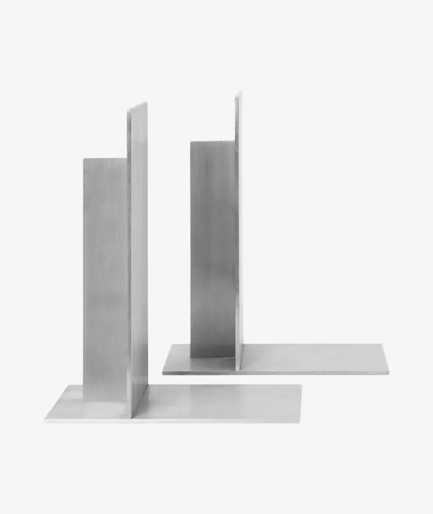 The Lager Bookends come as a set of two, crafted from brushed aluminium with a clean, industrial expression. Their bold, geometric form adds a sculptural element to shelving while keeping books neatly in place. Whether used functionally or styled as decorative accents, the bookends bring a sense of structure and quiet strength to your space.