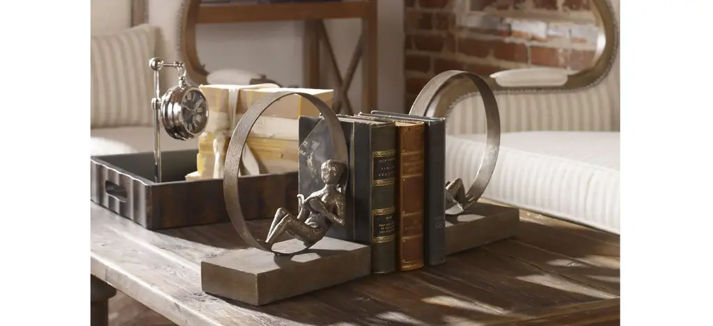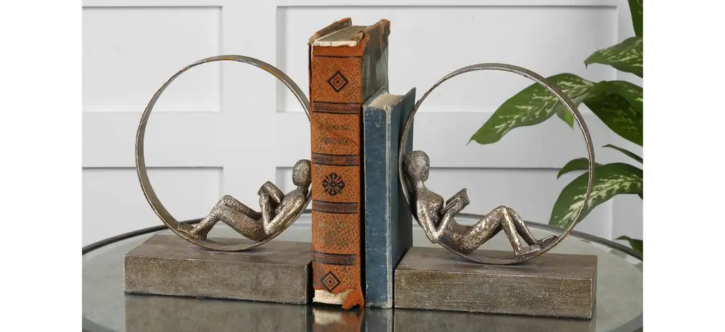 These whimsical bookends feature an antiqued silver leaf finish with a light gray glaze.