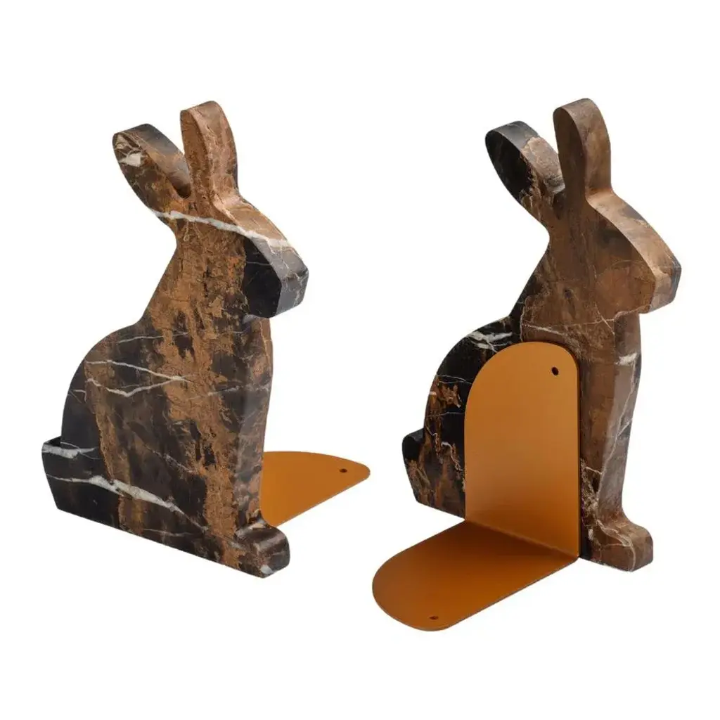 Marble And Steel Bunny Bookends By Alessandra Grasso, Set Of 2