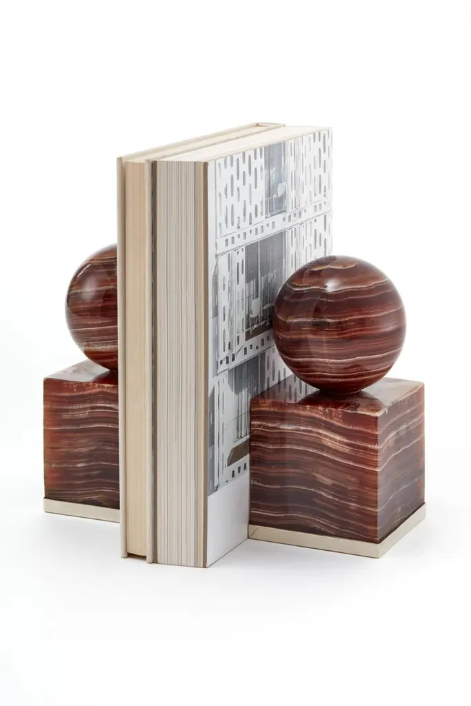 4" x 4" x 7.8"4.8 "x 4.8" x 9.5"Cuyo bookends are solid heavy beautiful pieces of geometrical onyx stone, mostly in square base and round top. Very sharm for a personal library.Our pieces are made by hand. One of a kind.All natural stones may vary in color.