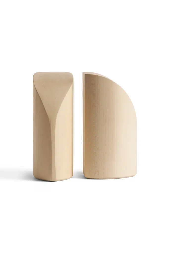 Enhance the aesthetic of your reading space with these Modern Minimalist Book Ends (2). Hand-carved from varnished, sustainable wood, these Ethnicraft PI bookends not only provide sturdy support for your literary treasures but also serve as captivating décor pieces. Their timeless design blends seamlessly with any interior, making them a perfect addition to both classic and modern settings.