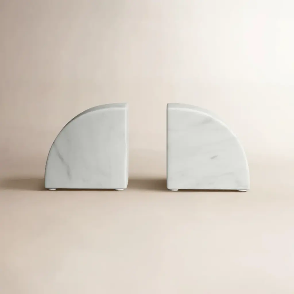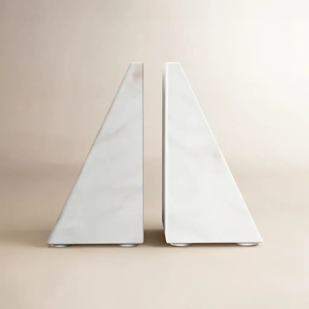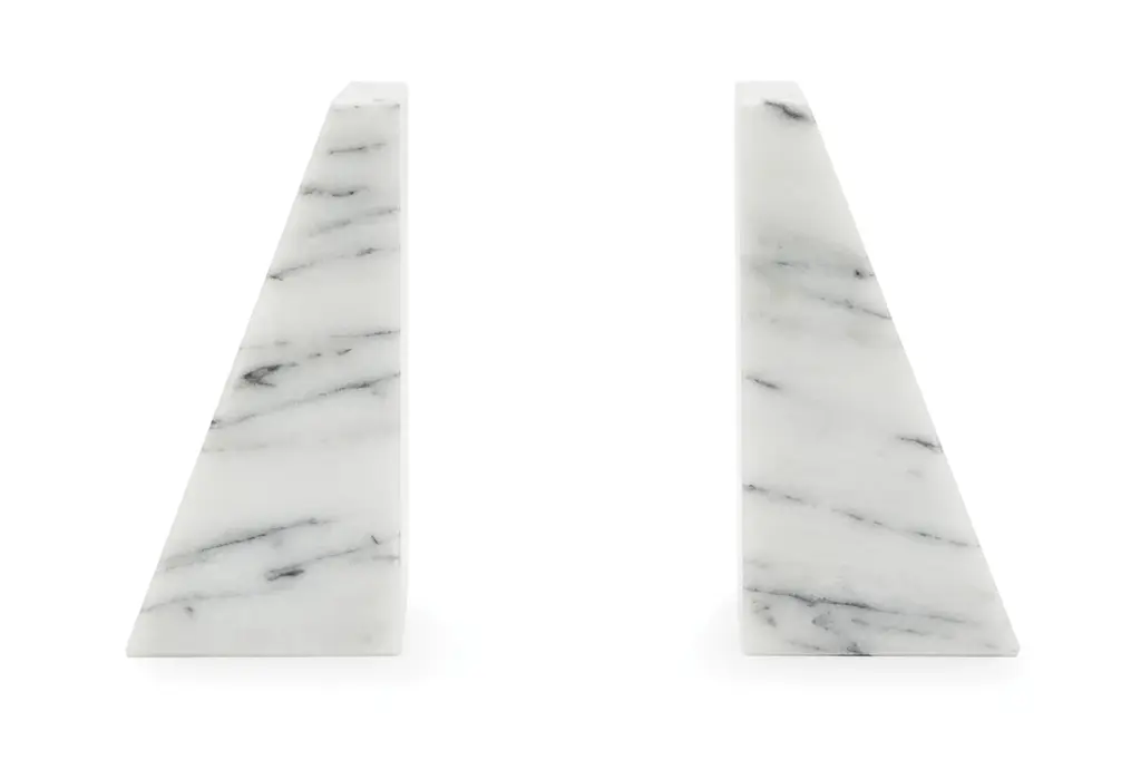 Stylize your reading materials with these marble bookends, perfect for a living room bookcase or a desk in your office. The square bottom and sleek shape make these a perfect mod accessory.