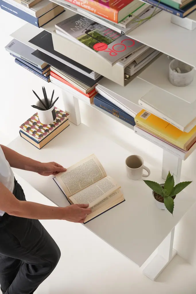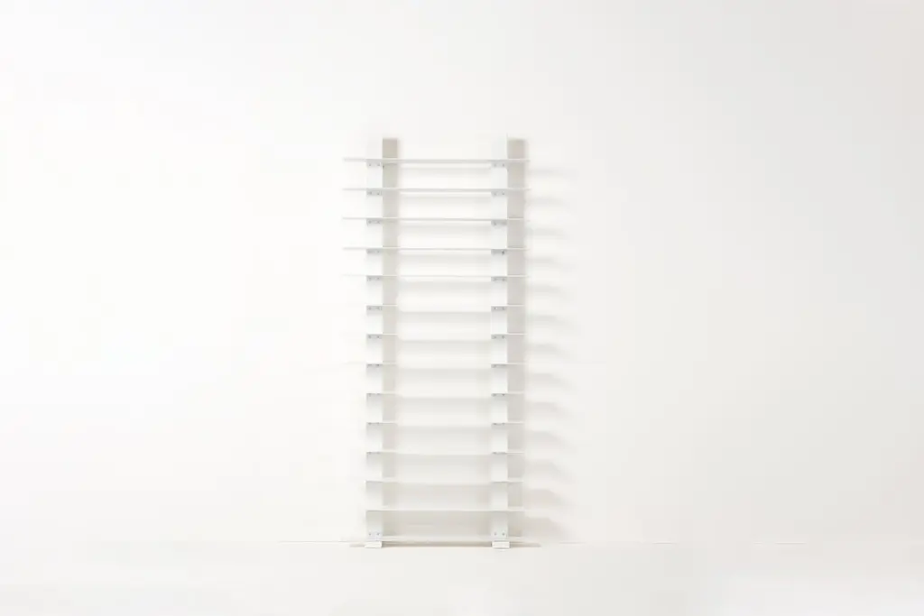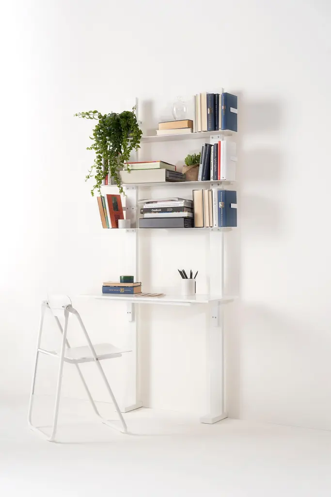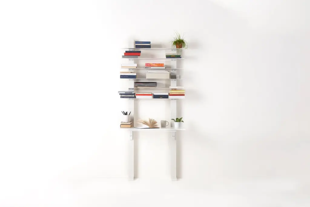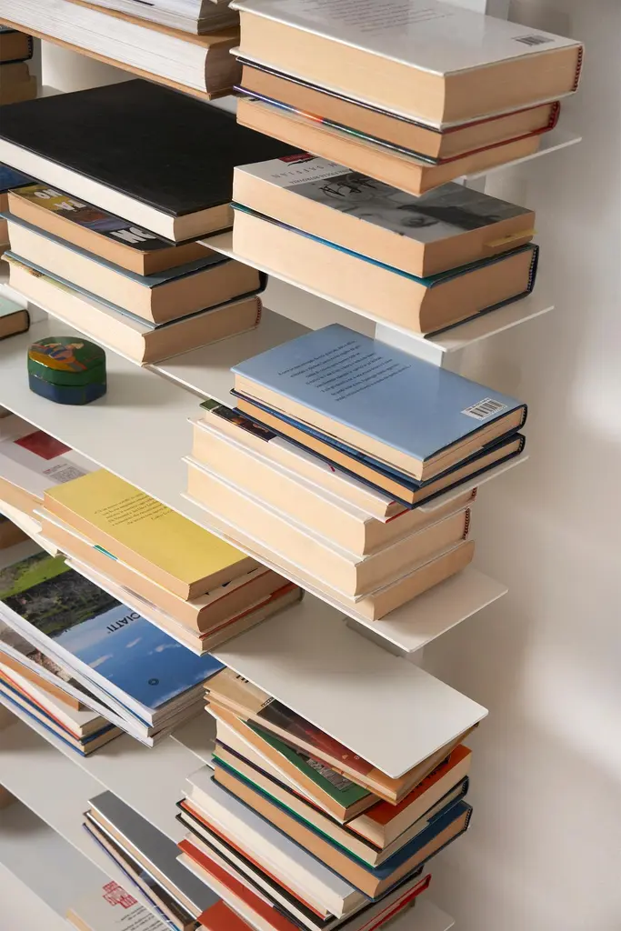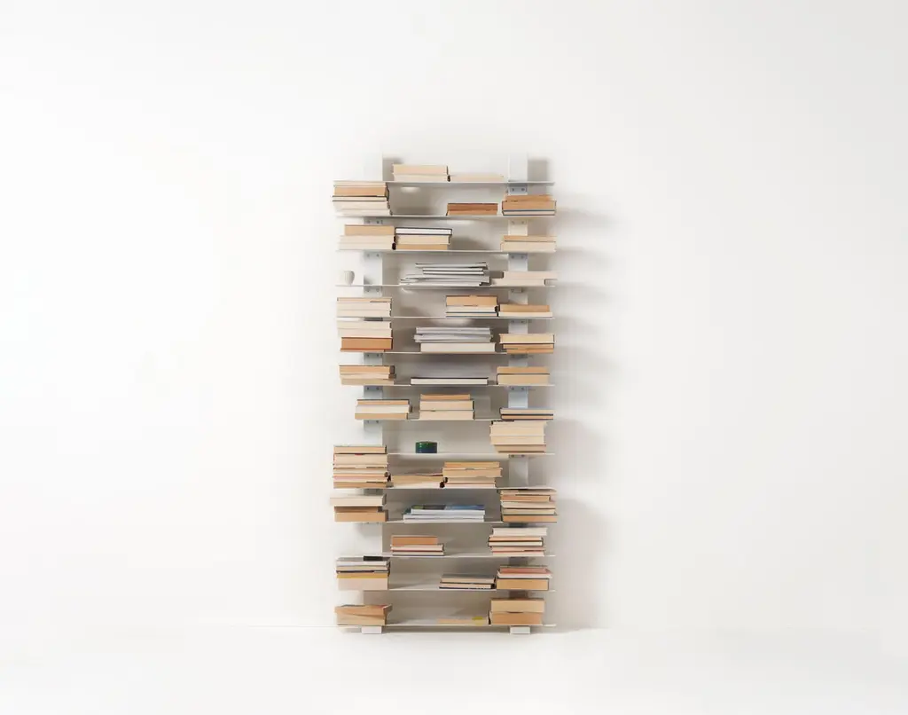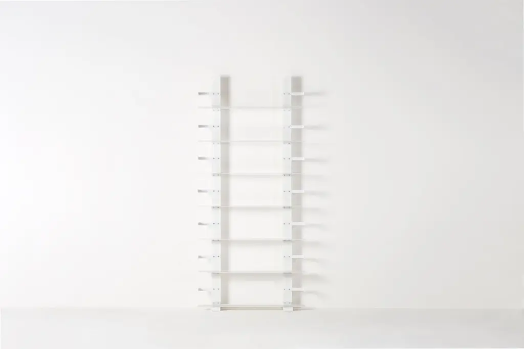 A paradox that takes shape: a wall that, instead of dividing, unites thanks to the power of knowledge. A wall made of books that turns into a bulwark of peace and hope for the future. Freely inspired by a symbolic picture from Kiev, Pacifico is the brand new bookcase designed by Lapo Ciatti, a book shelter that lies against the wall, metaphorically becoming the meeting point of culture and knowledge.The name of this piece of furniture also recalls historical roots: Pacificus was the archdeacon who, during the Carolingian age, actively contributed to the development of the Biblioteca Capitolare in Verona, the most ancient library in the Western world, still open today.Like a common thread connecting Pacifico and Ptolomeo, this is a tribute to those who have brought culture to the world. In fact, both Ptolemy I Soter – hence the iconic Ptolomeo collection – and Pacificus were illustrious personalities who have contributed to the spread of knowledge and whom Opinion Ciatti wants to celebrate with its products.A wall-mounted steel bookcase, Pacifico stands out for its modularity. Available in four different modules, it can be combined in countless compositions to fit the requirements of every project. The design of the Pacifico bookcase is as essential as it is studied in detail. It is composed of two wall-mounted vertical steel uprights that can accommodate – depending on the chosen version – shelves, bookends, but also an optional desk that makes this bookcase ideal as a functional home office corner.A product that blends in with the surrounding space without ever losing its outstanding character.PACIFICO KIT A: 192X90cm shelf 13cmPACIFICO KIT B: 192X90cm shelf 26cm