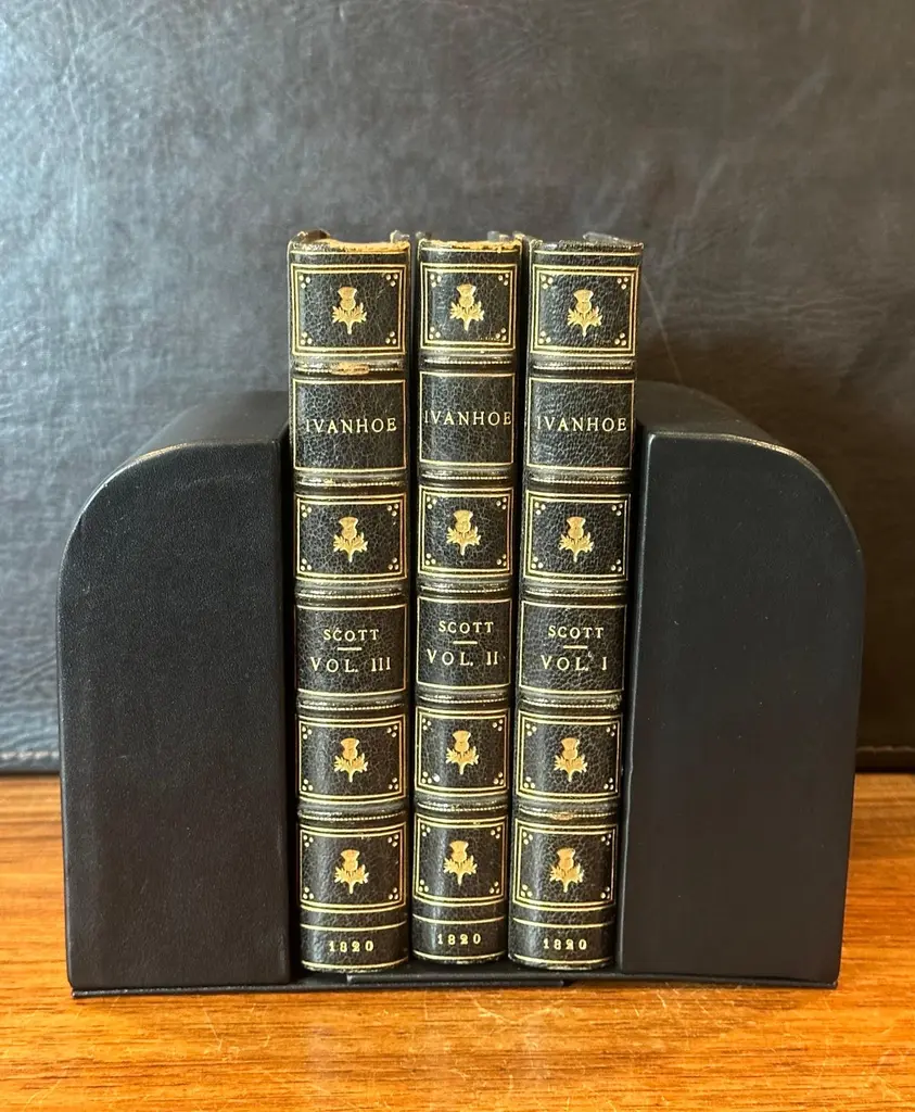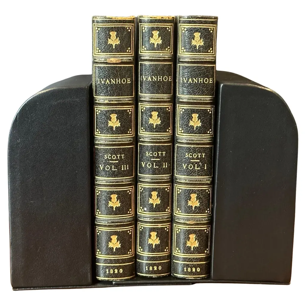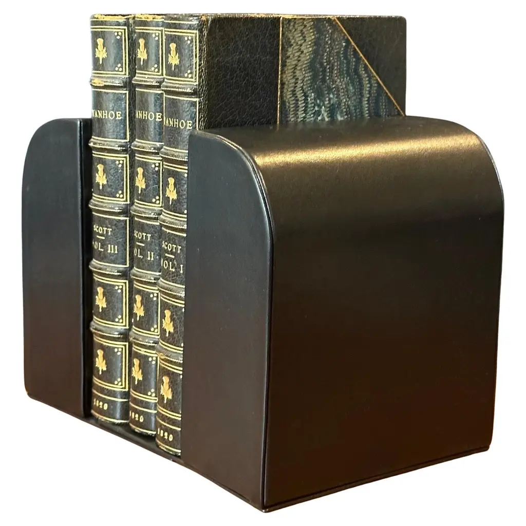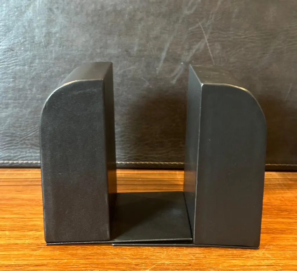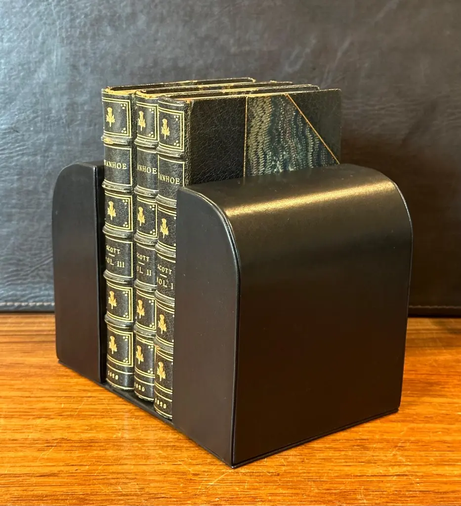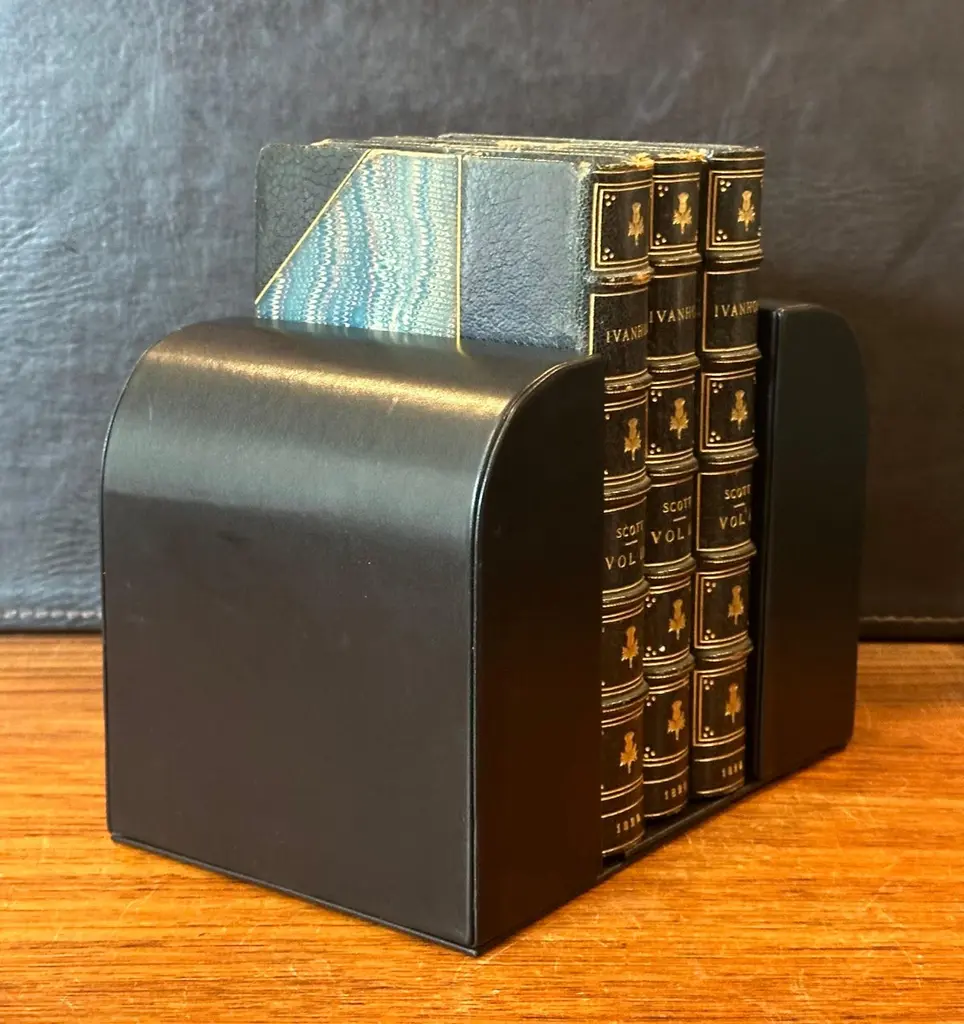 Classic pair of black leather bookends by Stuart Kern, circa 1990s. The bookends are in like new condition and measure 10.75"W x 5.5"D x 6"H. Very nice high quality pair! Two sets available. #3995
