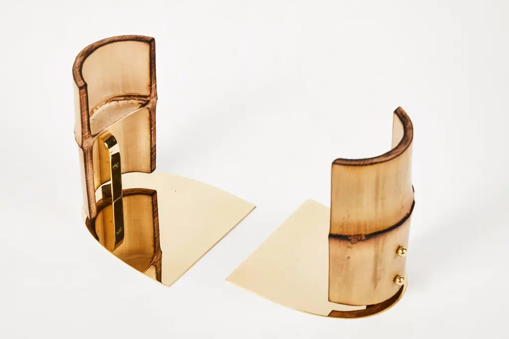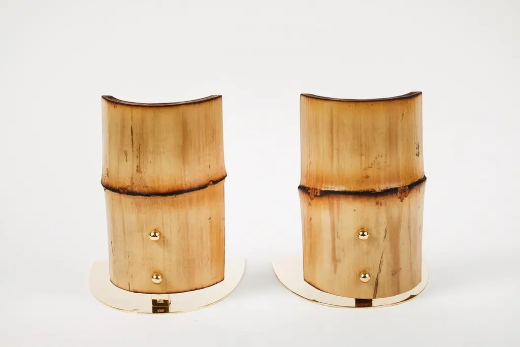Pair of Carl Auböck Model #1937 'Bamboo' bookends. Designed in the 1950s, this incredibly refined and sculptural pair of bookends are executed hand cut and polished bamboo and brass. Price is for the pair. Two in stock ready to ship. Available in unlimited quantities. Please note that in-stock availability is subject to change at any time. Allow additional 3-4 weeks for items not in stock. Can take up to 8 weeks.All sales are finalProduced by Carl Auböck IV in the original Auböck Werkstätte in the 7th district of Vienna using the same exacting standards, high-quality materials, original molds and techniques of his legendary grandfather. Auböck's design career was long and varied, reaching its pinnacle of prestige at the Triennale di Milano in 1954, where he received four gold medals.Please note that only one representative example of each item is shown in the images. Finish varies from item to item as does the sizing of the Bamboo due to the organic nature of the materials and handmade nature of their fabrication.