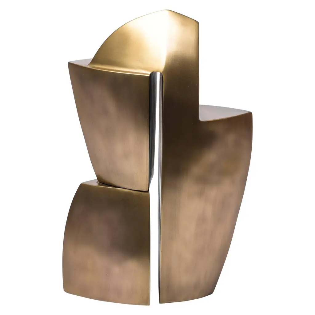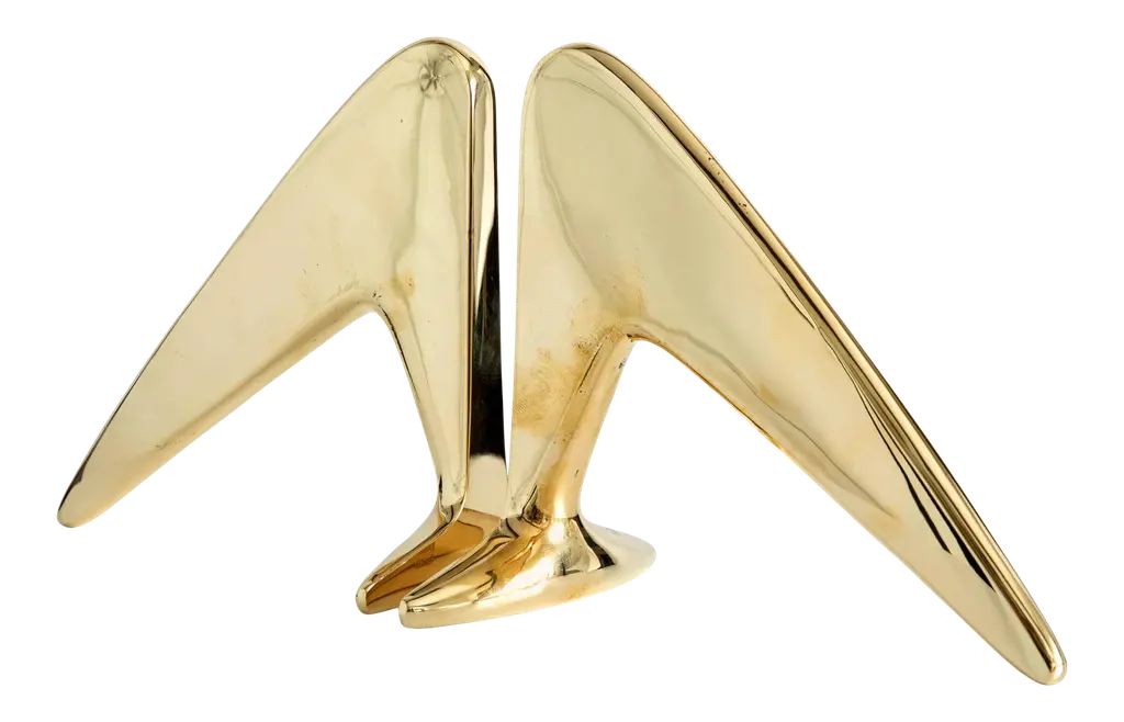 Pair of Carl Auböck model #3846 brass bookends. Designed in the 1950s, this incredibly refined and sculptural pair of bookends are executed in polished brass. Price is for the pair. Two in stock ready to ship. Available in unlimited quantities. Out of stock lead time 3-4 weeks or more. Produced by Carl Auböck IV in the original Auböck Werkstätte in the 7th district of Vienna using the same exacting standards, high-quality materials, original molds and techniques of his legendary grandfather. Auböck's design career was long and varied, reaching its pinnacle of prestige at the Triennale di Milano in 1954, where he received four gold medals in recognition of his iconic work.Finish varies from item to item due to the handmade nature of their fabrication.