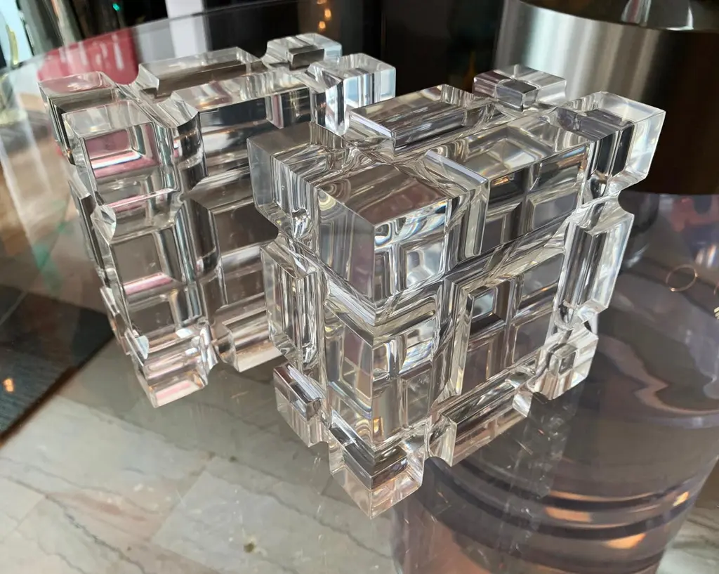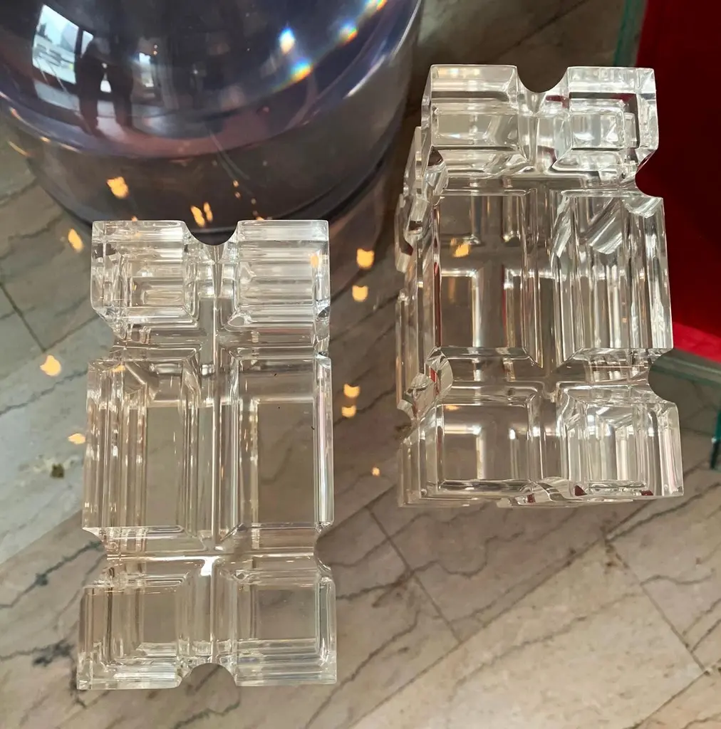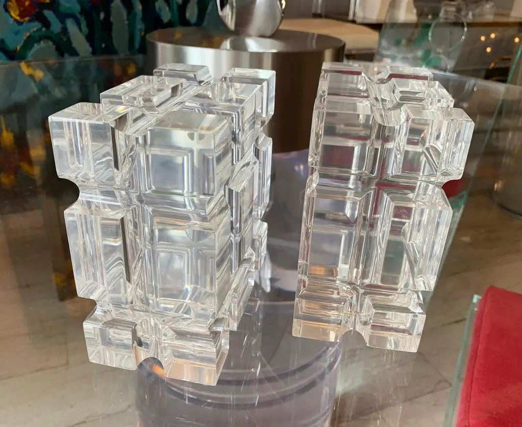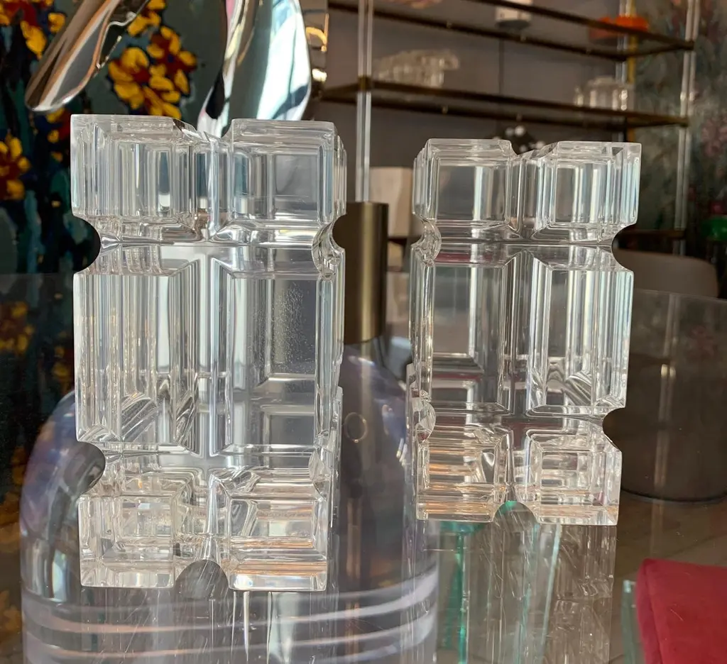Pair Of Geometric Bookends In Lucite By Amparo Calderon Tapia For Cain Modern