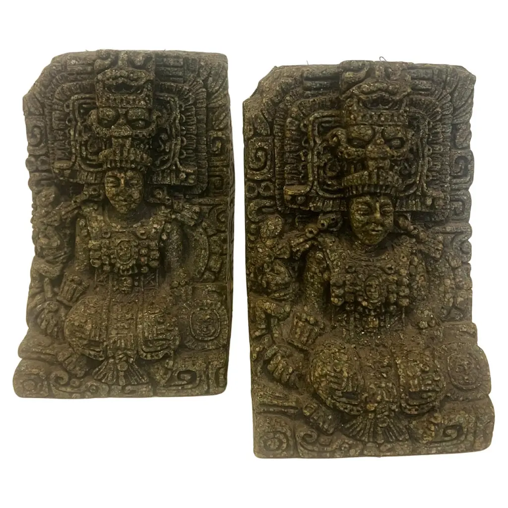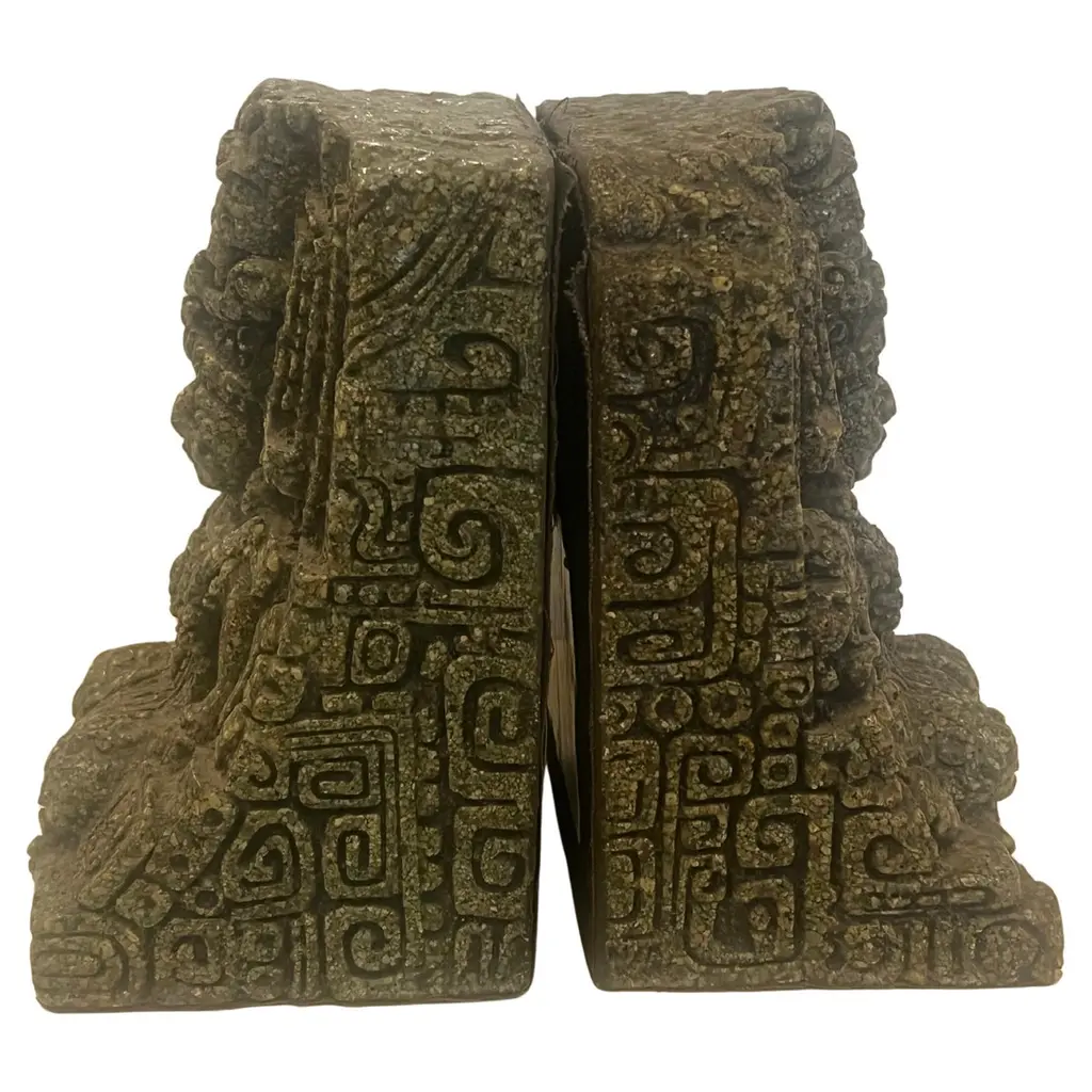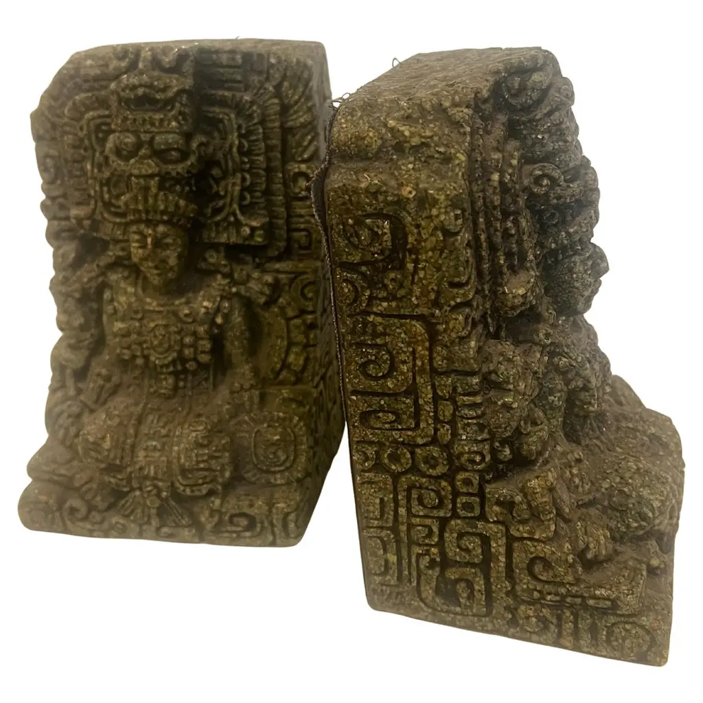 1970's solid resin stone Mayan bookends from Mexico nice solid and unique.