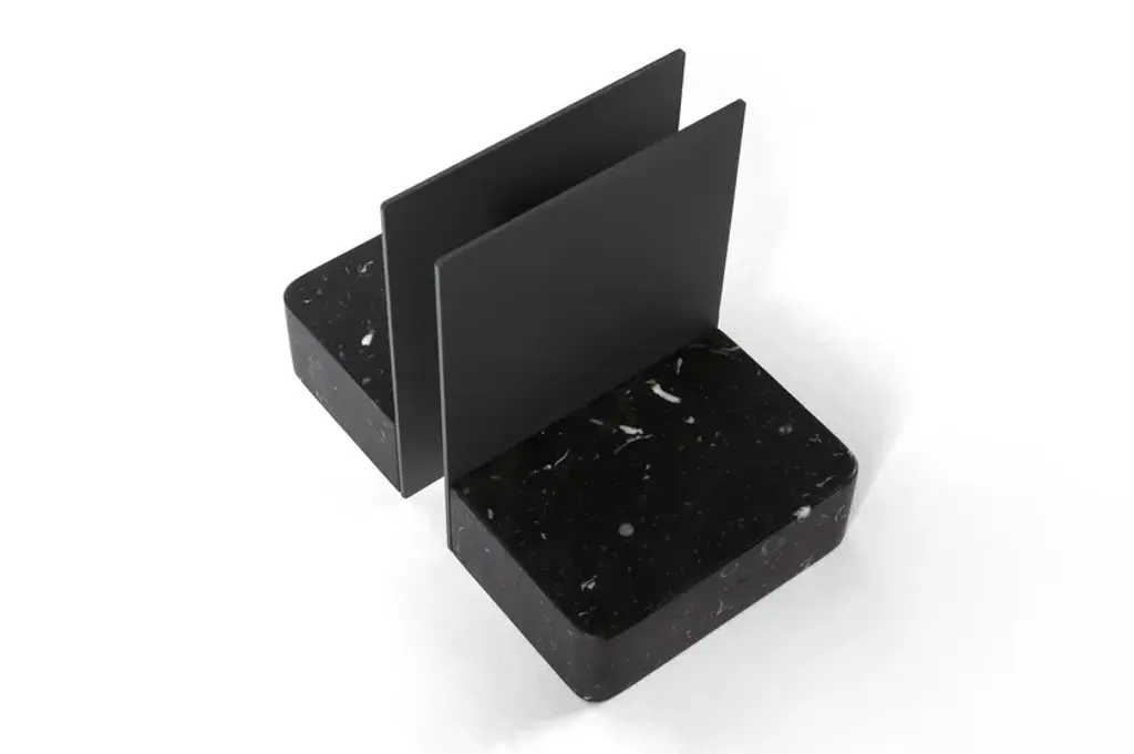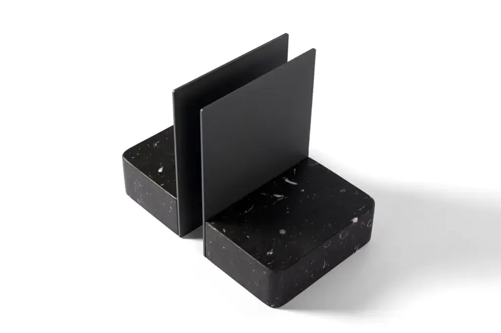 The L Collection 08 pair of bookends combines elegant Nero Marquinia marble and steel.Piero Lissoni has taken every day items for the home and reinterpreted them in novel ways, using natural stone as the starting point.Umbrella stands, door stops, trays and other items are transformed from banal, functional objects into arresting, elegant feature pieces.The L Collection 01 trays contrast striking marble in a choice of black, red or green with an iron frame to create robust yet decorative pieces.