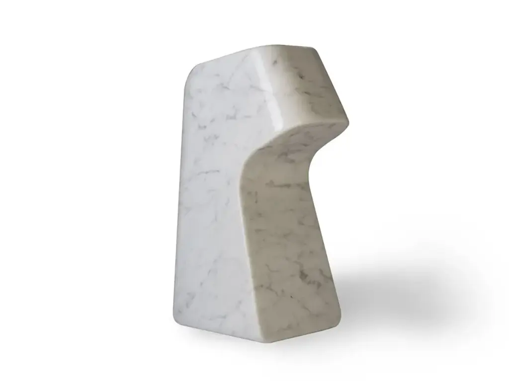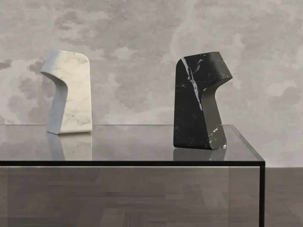 Pingu is a bookend obtained from an only piece of marble, available in White Carrara or Marquinia Black. It can be placed in various senses, bought alone or in pairs, depending on the needs. Pingu can be used on a shelf or a desk as a bookend, paperweight, or as a simple furnishing detail to enhance a space.