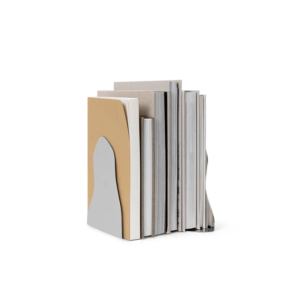 The Pond Bookend by Ferm Living adds a touch of serene elegance to any home library with its unique design inspired by tranquil water puddles. Part of the distinctive Pond Collection, this bookend embraces organic forms, bringing a fresh interpretation to familiar functional decor. Crafted from a single sheet of stainless steel, bent gracefully to capture fluidity, it boasts a reflective mirror finish. This design not only supports your books and magazines but also enhances the aesthetic of your shelving with its subtle, reflective beauty.