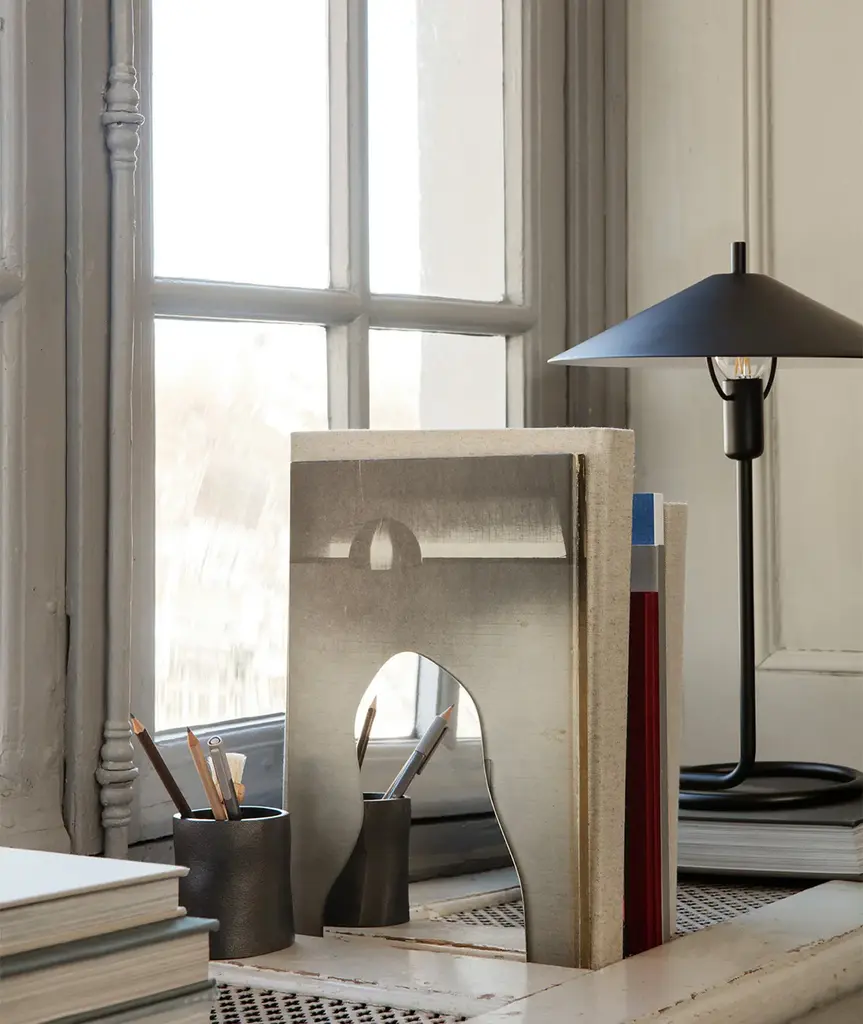 Reminiscent of small, calm puddles, the Pond Bookend brightens up the home library with its fluid shape and mirrored surface. The Pond Bookend is a part of the Pond Collection, where organic forms define the expression of familiar design pieces. Made of a bent stainless steel sheet with a mirror finish, the Pond Bookend subtly assists your books and magazines on the bookshelf.
