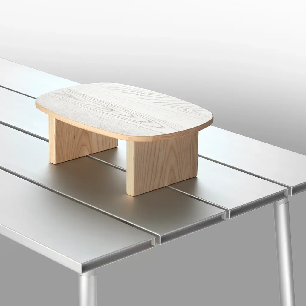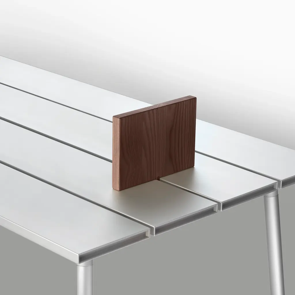 Run by Sam Hecht & Kim Colin, 2016 The Run Bookend is an accessory designed to fit the Run collection of tables, benches and shelves. The bookend acts as a separator and provides support for books. It works just as well on a table or bench as it does in a Run shelf. Place the bookend anywhere you like on a Run table, bench or shelf and secure underneath with the provided knob. Handcrafted from solid Ash, Walnut or Accoya, a modified pine wood for outdoor use.