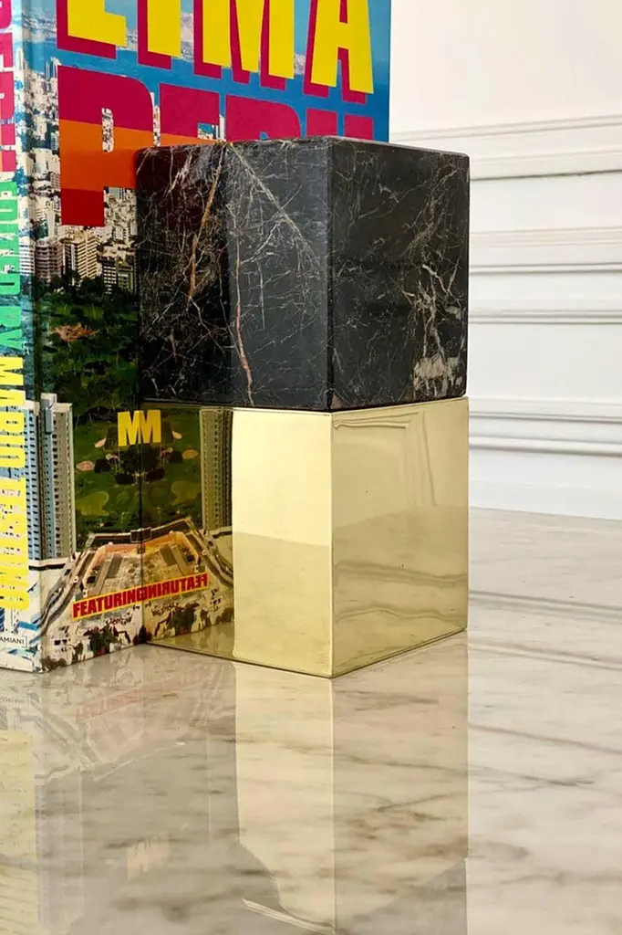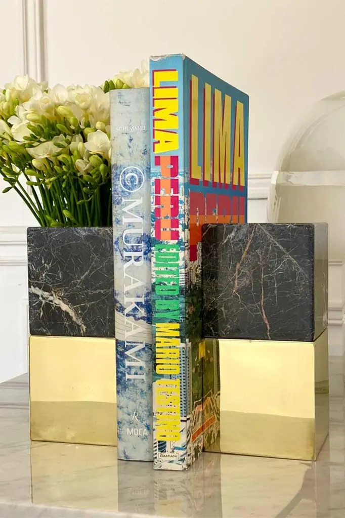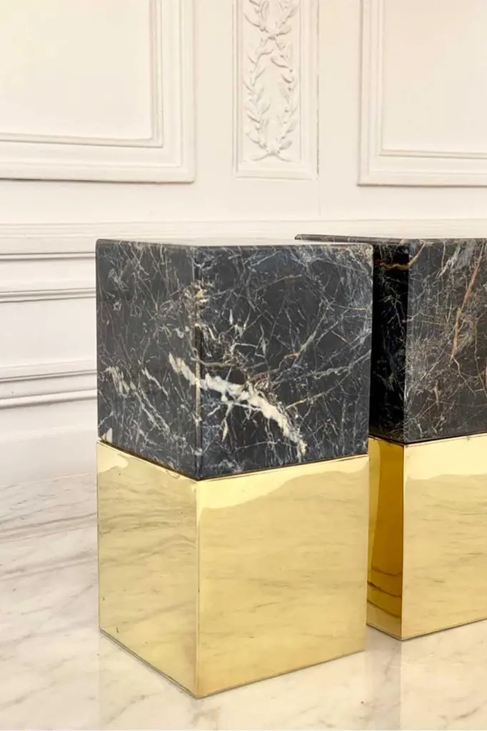 Salta Large Square Black Onyx Stone & Brass Pair Of Bookends
