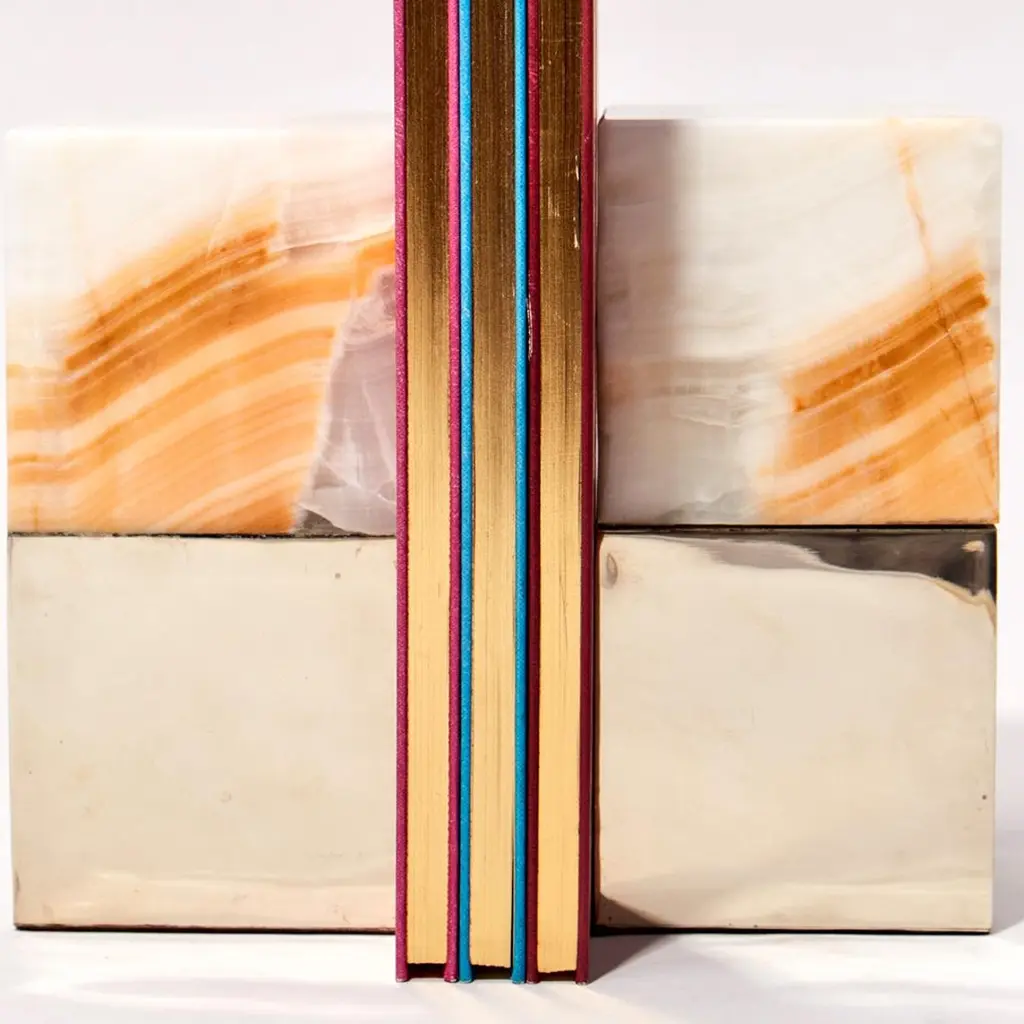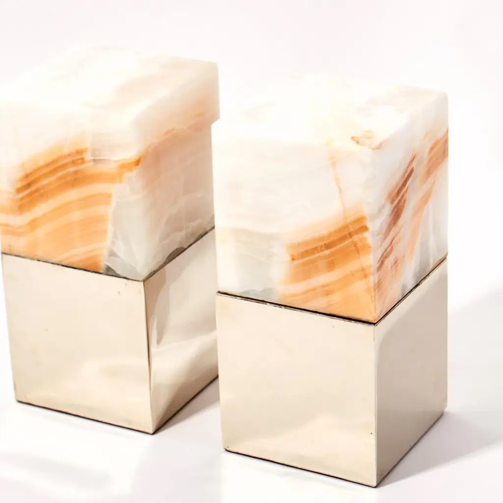 Salta Large Square Cream Onyx Stone Pair Of Bookends