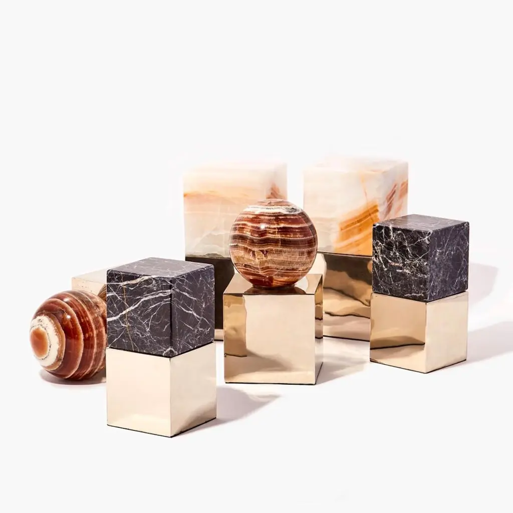 Salta province is called the beautiful, and this adjective introduces us to its profound beauty. Its fertile valleys, windy desert, colorful mountains and blue sky are the images that led us to design our largest collection. It has pure and contemporary lines, a classic vision but with modern design. The chosen materials are alpaca and onyx that, with its quality, exalt the variety of forms and uses of the objects of this collection.Our pieces are made by hand. One of a kind.All natural stones may vary in color.