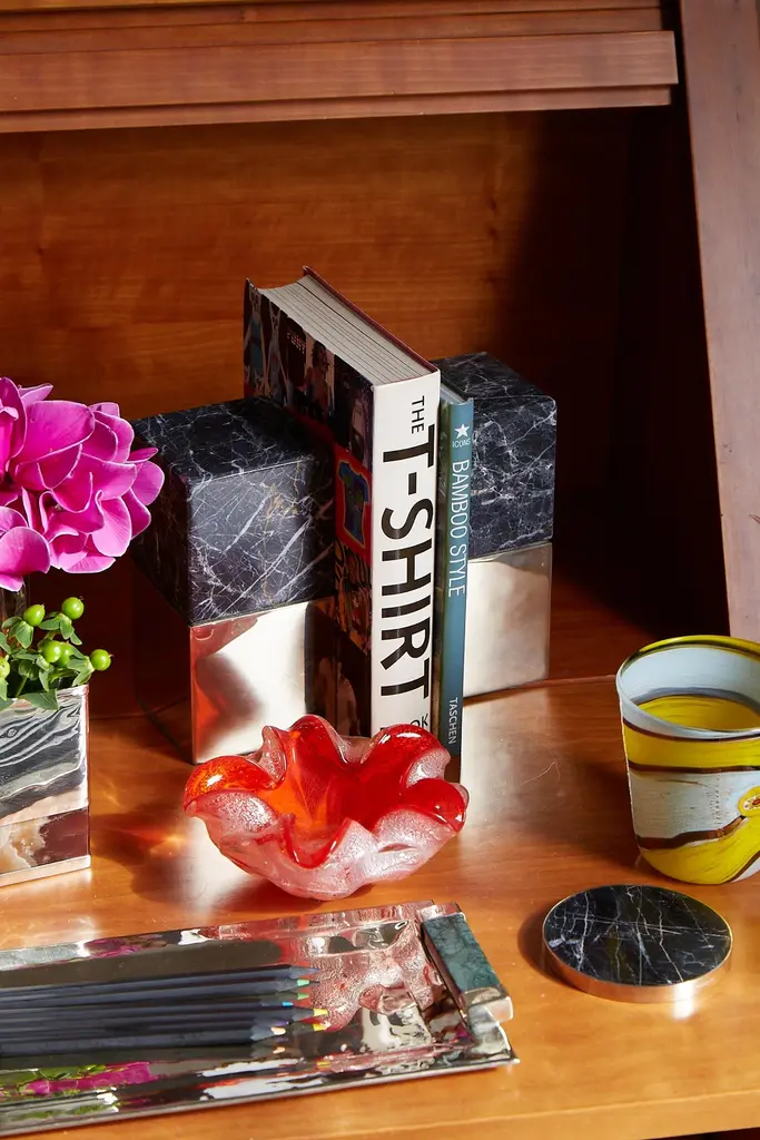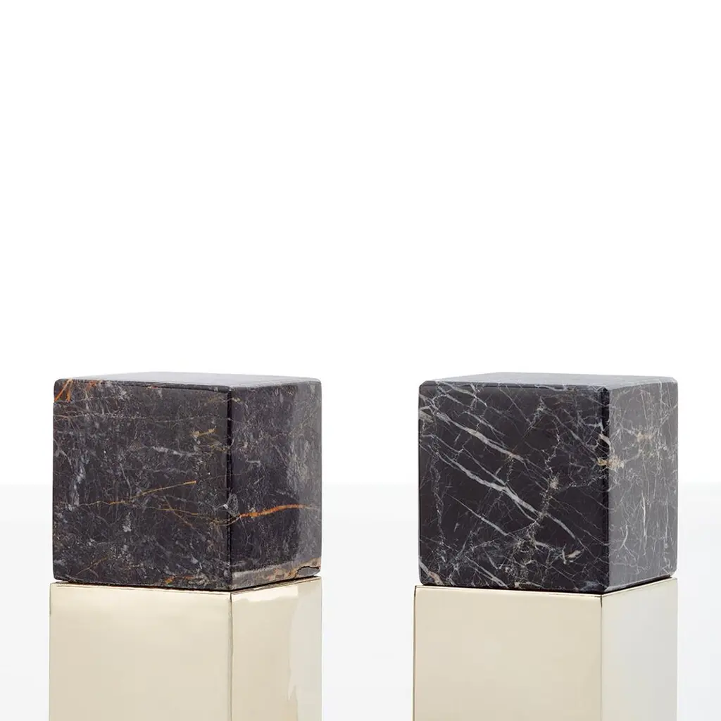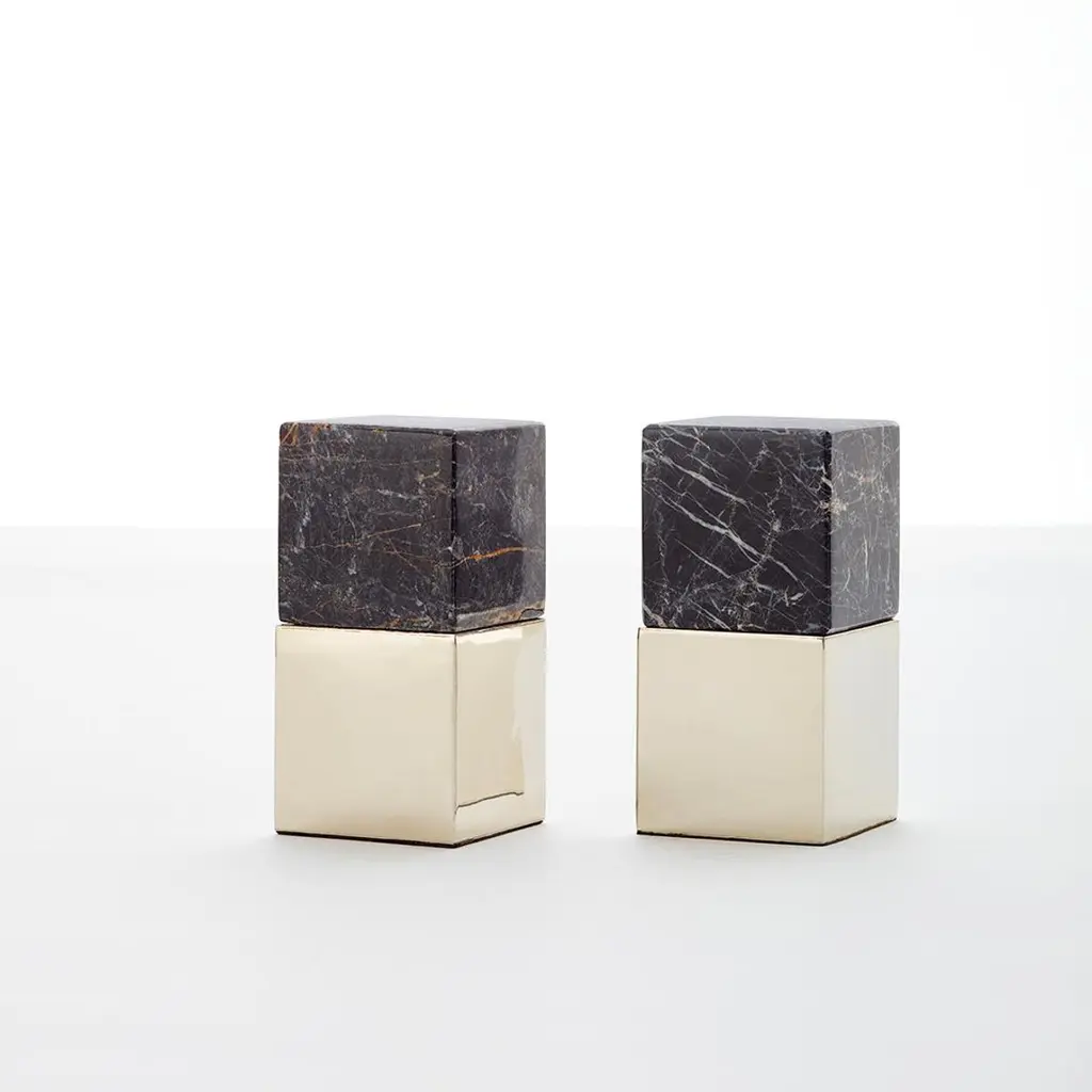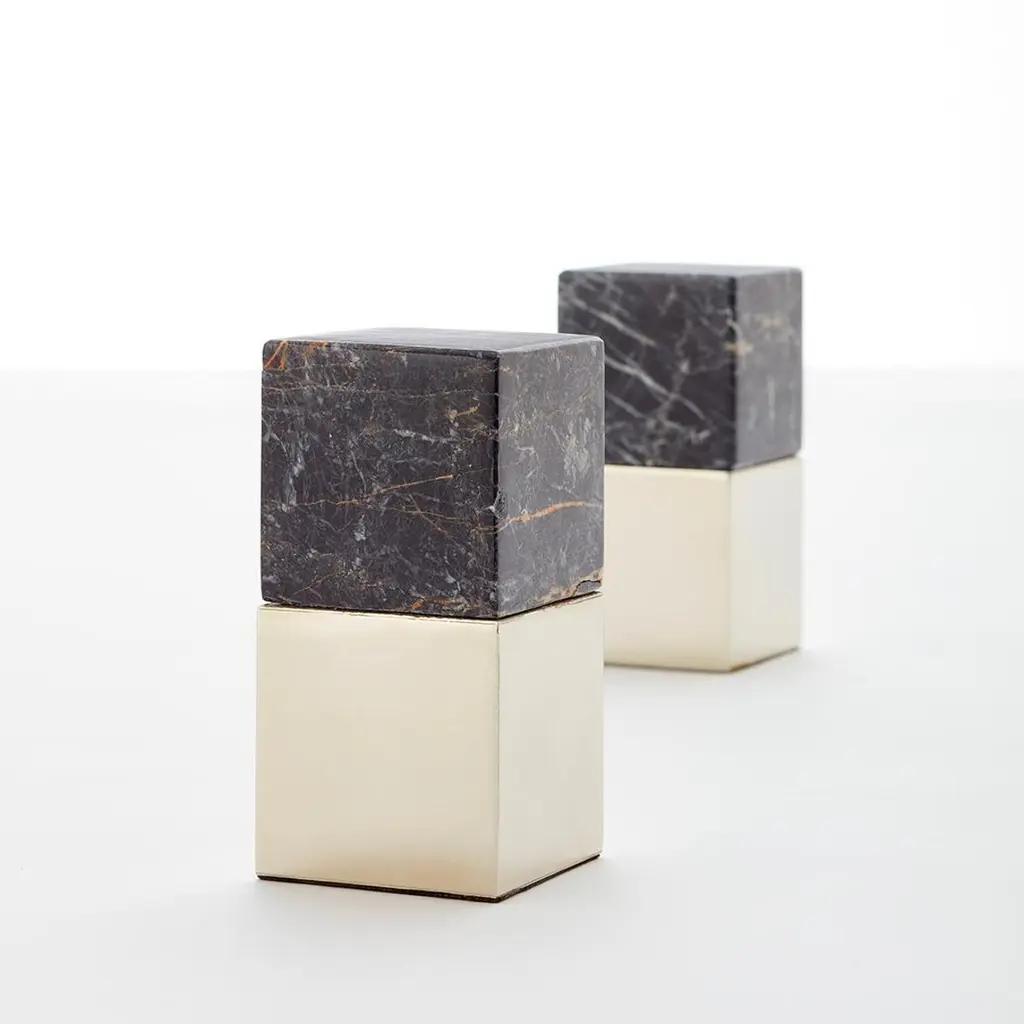 Salta Medium Square Black Onyx Stone Pair Of Bookends