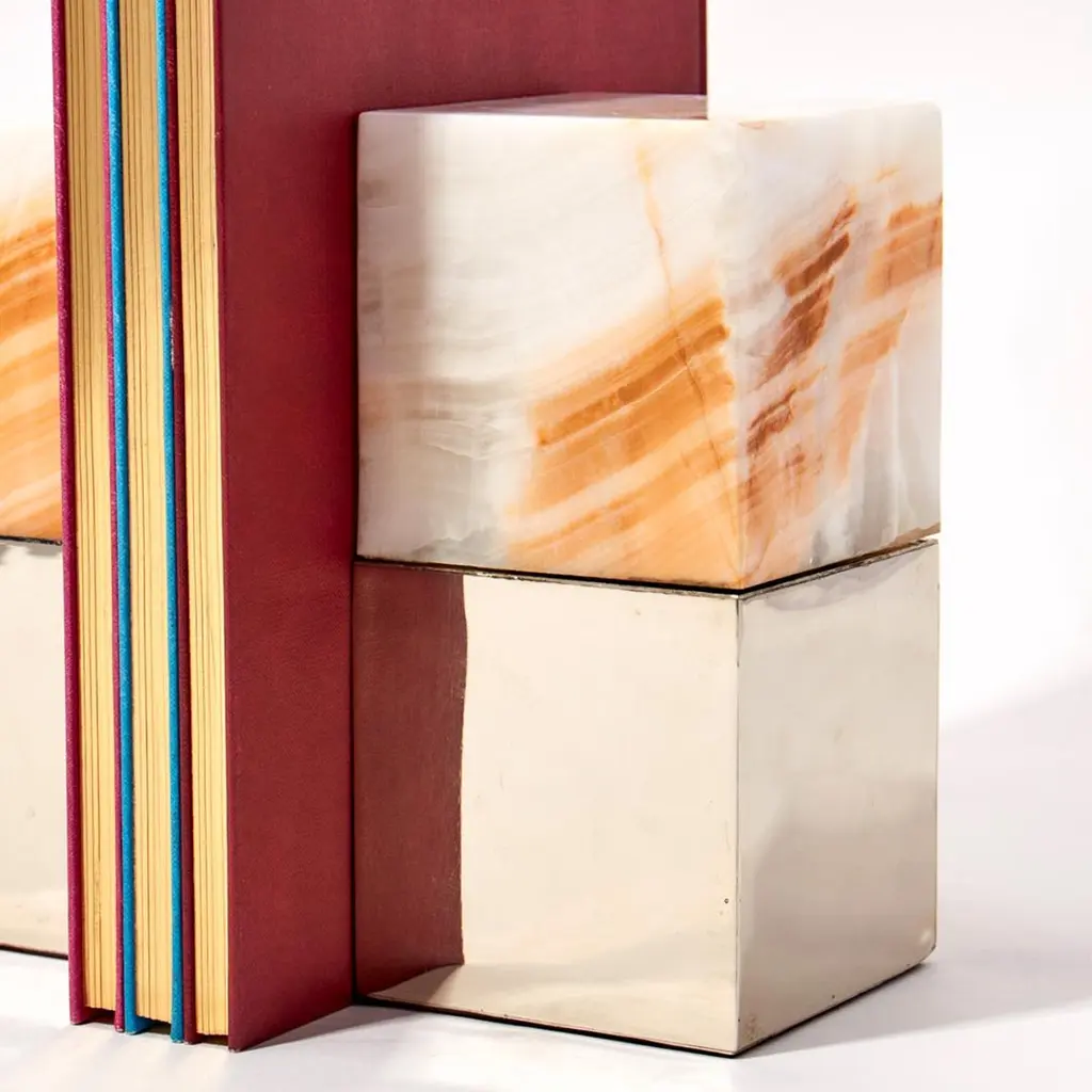 Salta Medium Square Cream Onyx Stone Pair Of Bookends