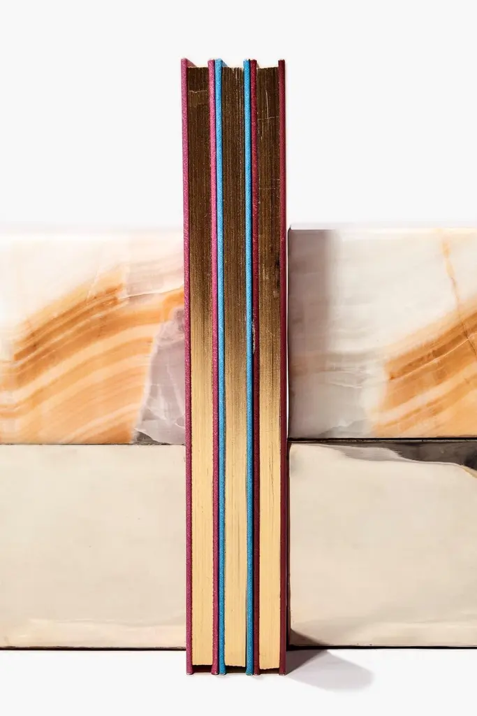 Salta Medium Square Cream Onyx Stone Pair Of Bookends