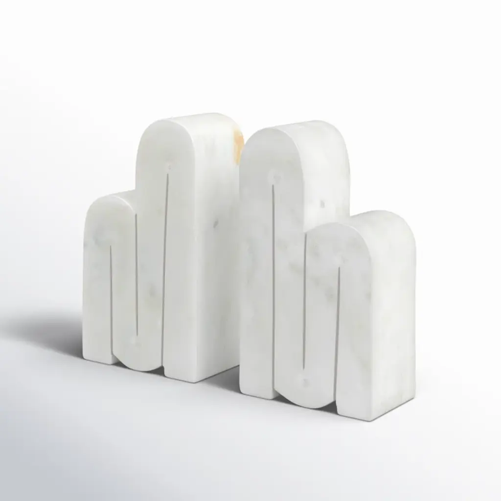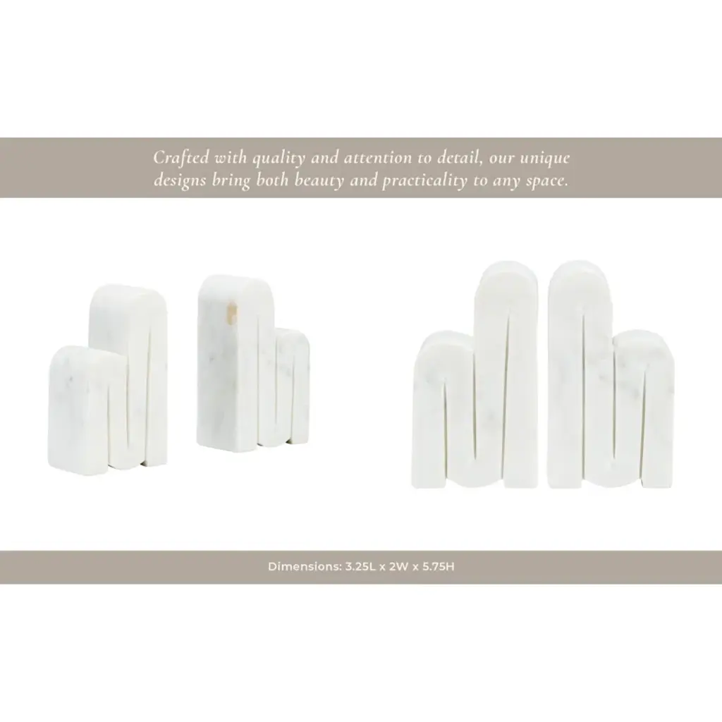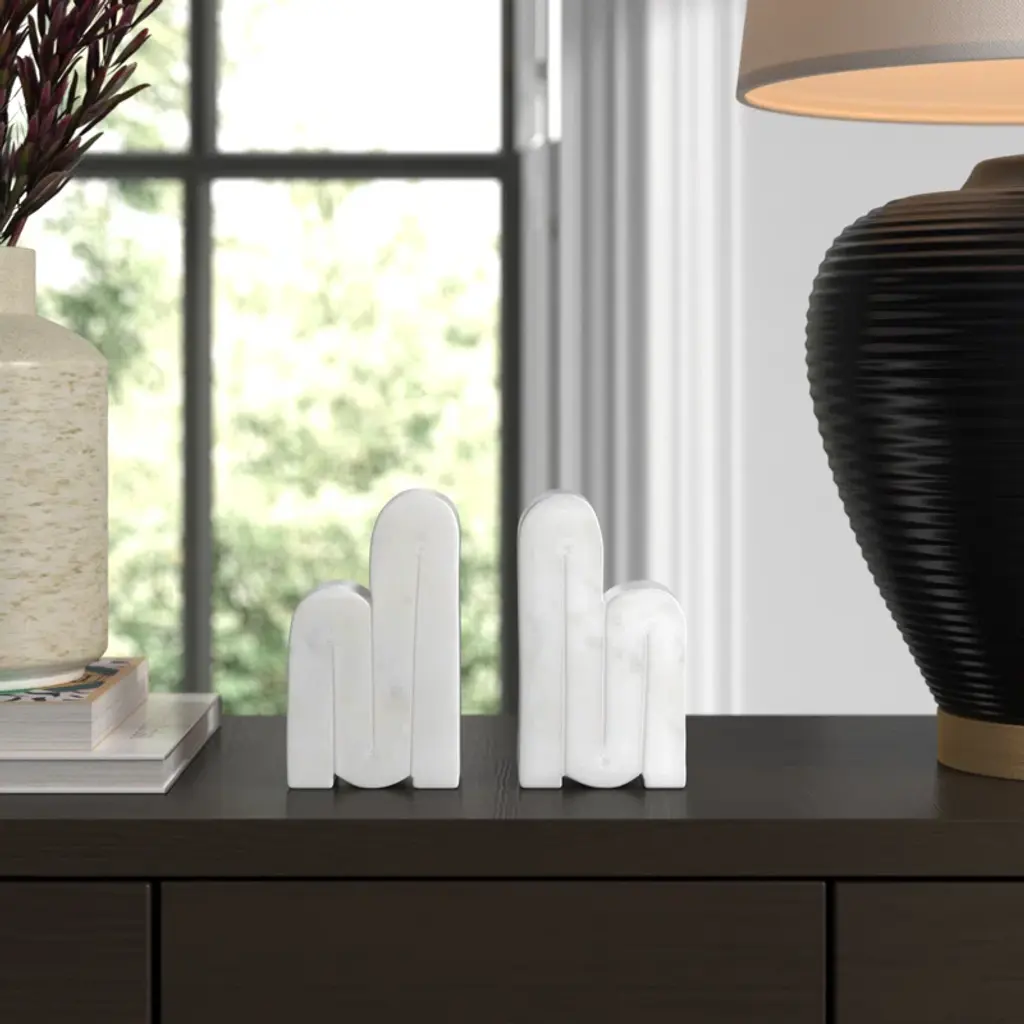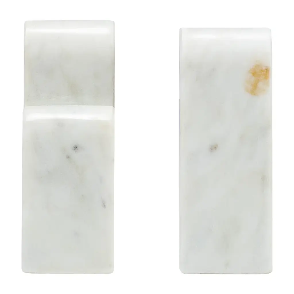 Set Of 2 Marble Bookends Contemporary Abstract White Swirl Design Bookend Set Book Organization Home