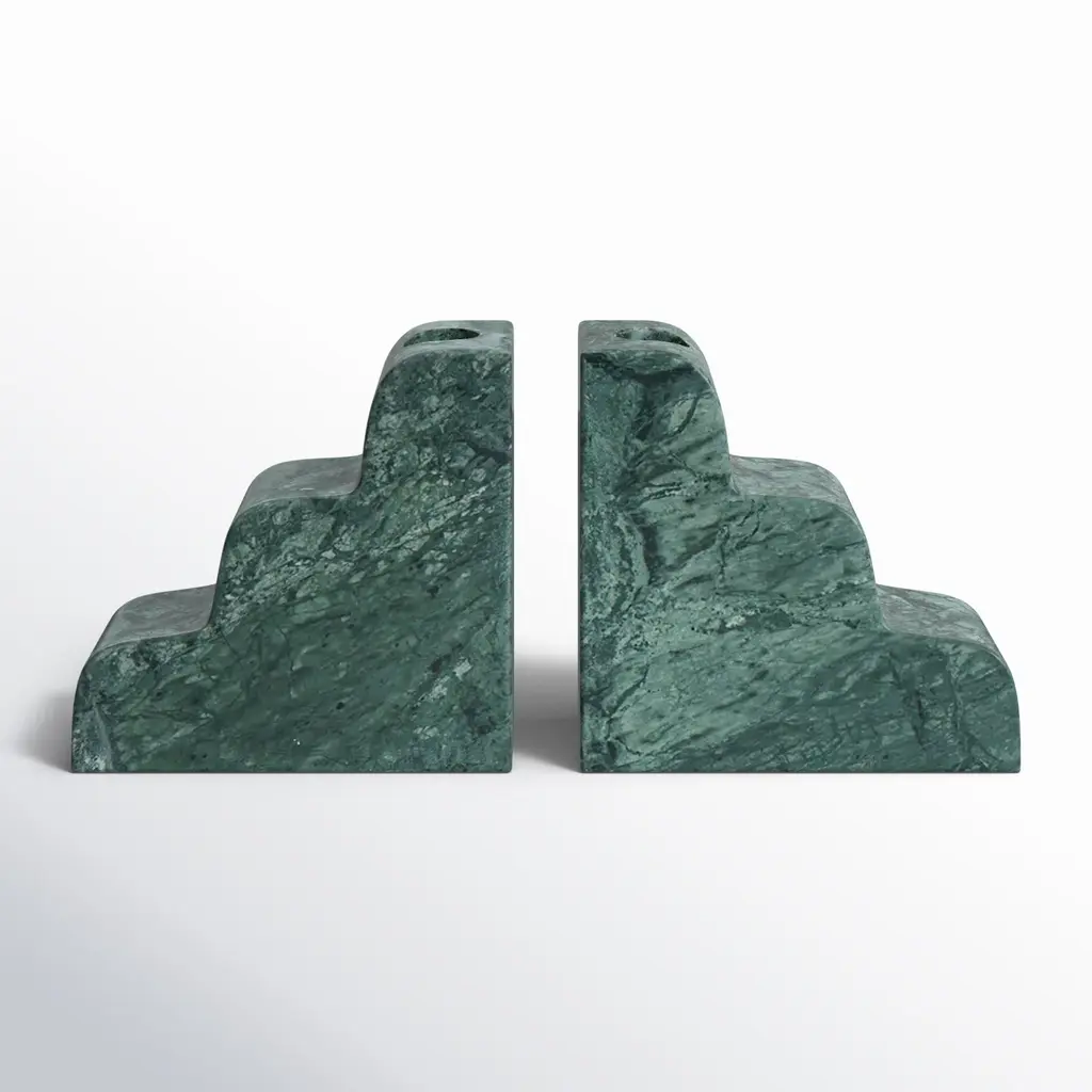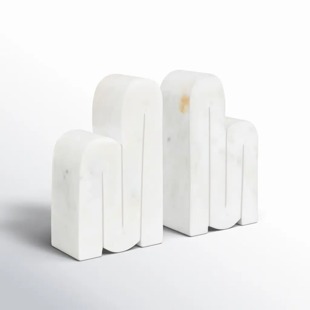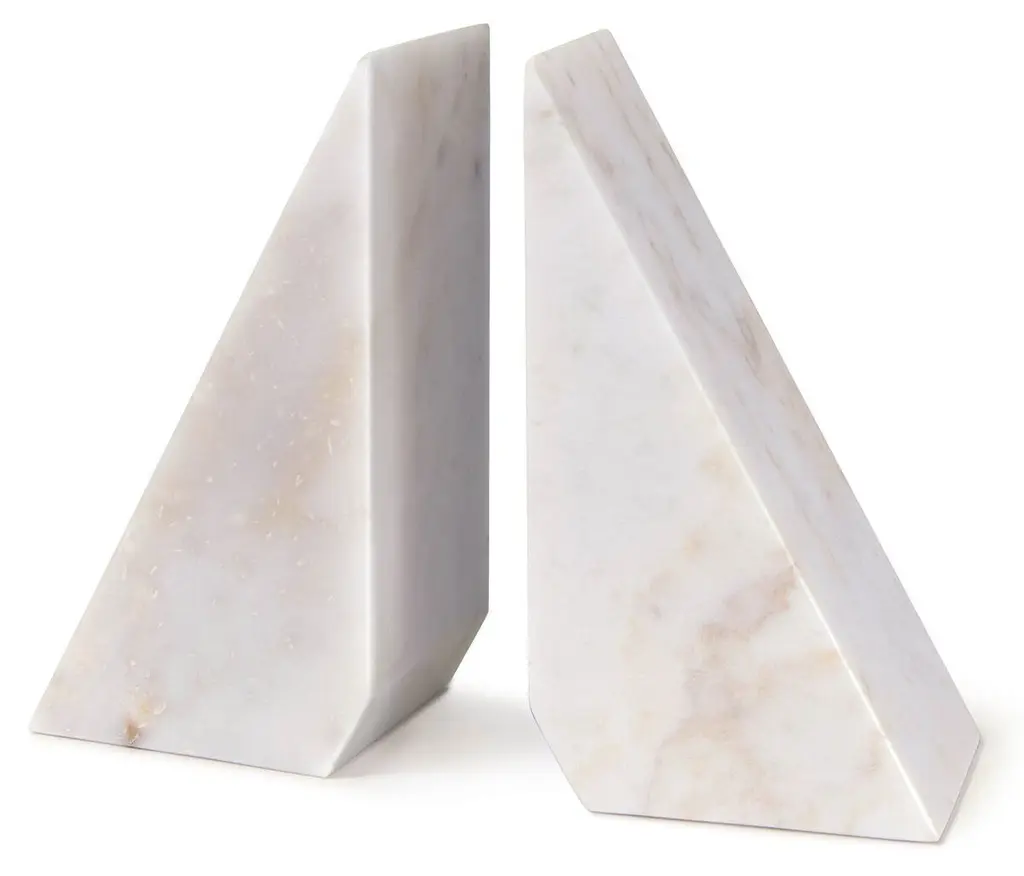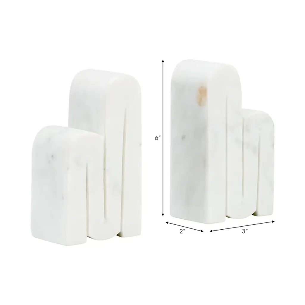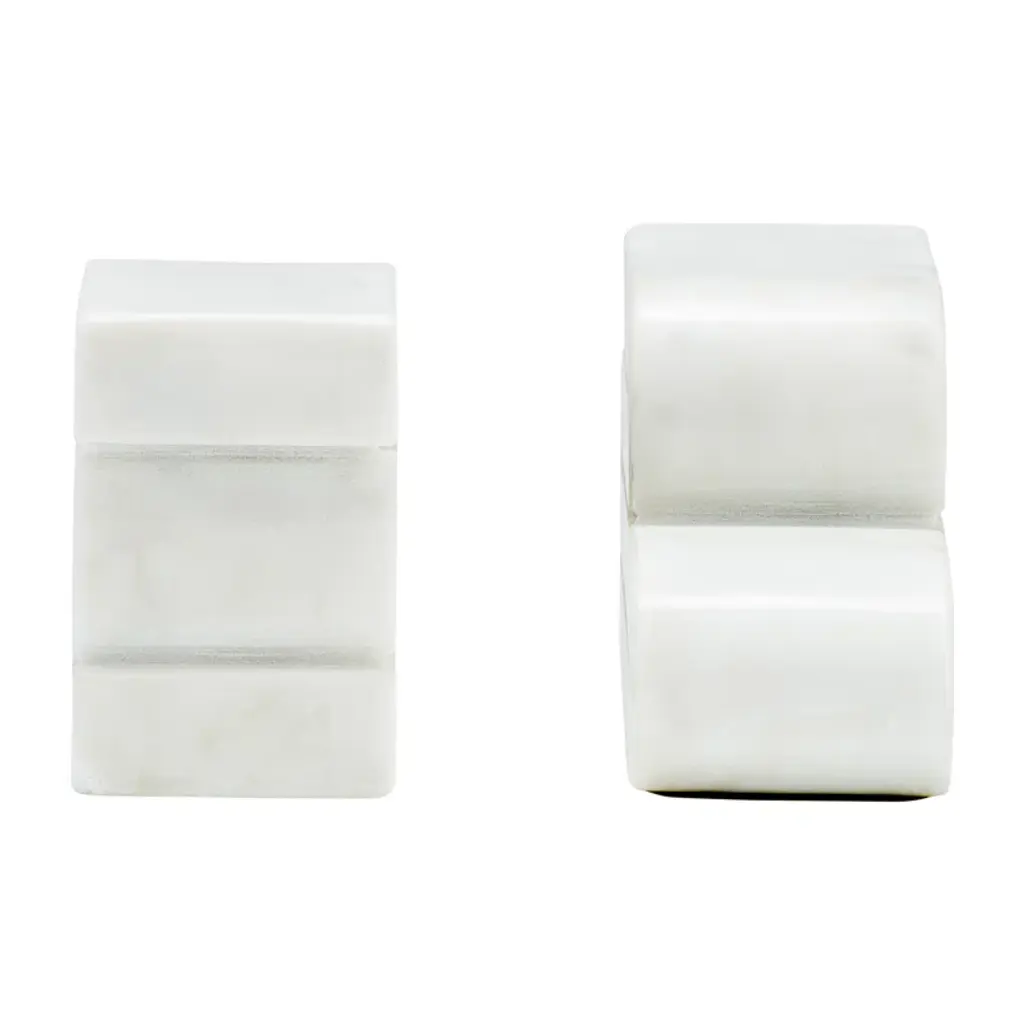 Set Of 2 Marble Bookends Contemporary Abstract White Swirl Design Bookend Set Book Organization Home