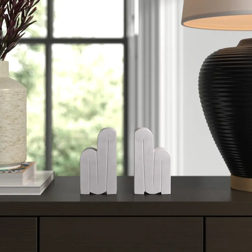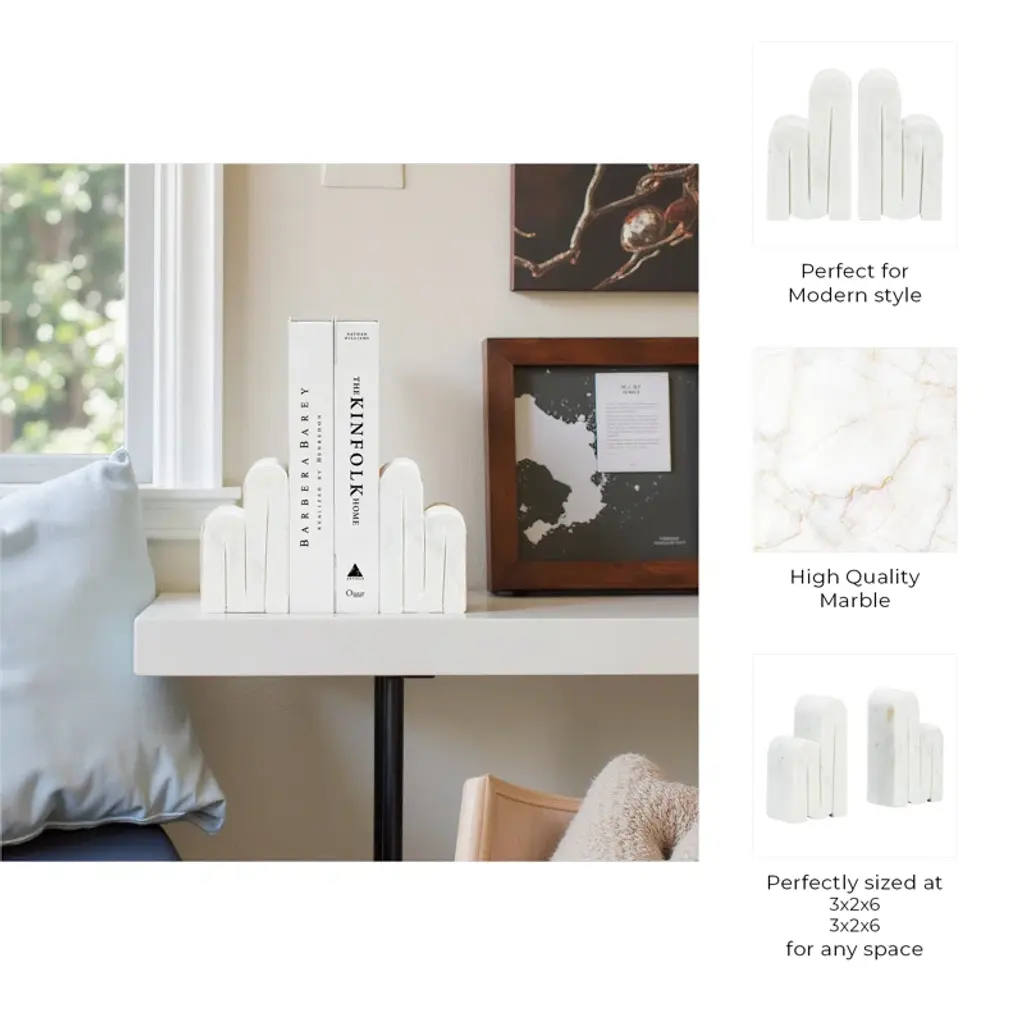 These bookends serve multiple purposes! They are not only a stylish decorative addition to any room, they will also help organize your book collection while showing off your personal style and impeccable design tastes.These high quality bookends feature an artistic, creative swirly shape in gorgeous white. These trendy bookends will look great on any bookshelf, mantle, desk or coffee table, adding a stylish and sophisticated decorative touch while conveniently securing your books safe and sound!