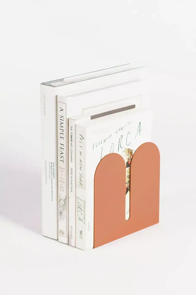 Dumbo bookends were made for design lovers and bookworms. The double arc shape is made of solid steel and powder coat painted in bright colors. Sold in three different sizes to support your full library.