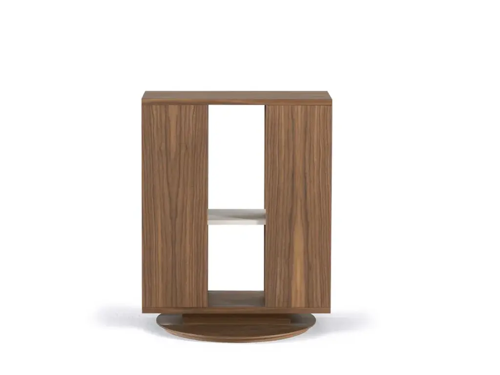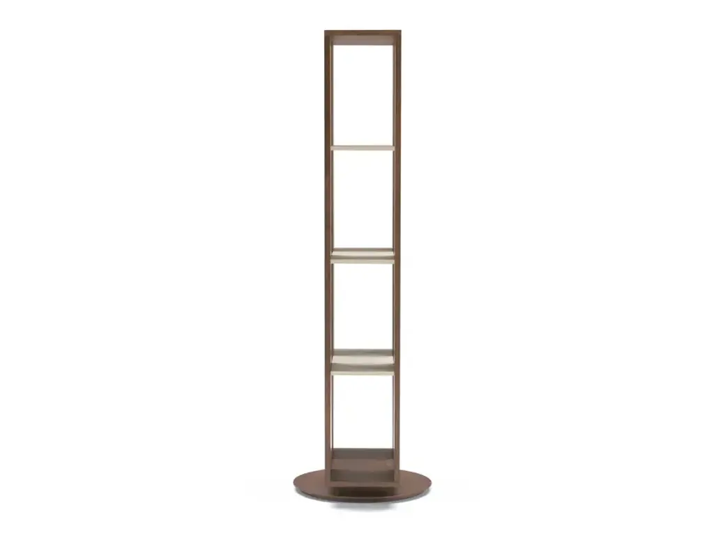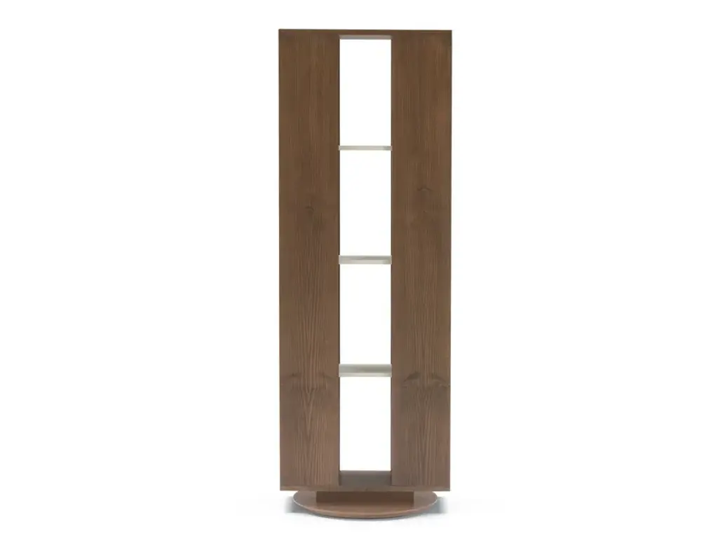 Revolving bookends element with structure, base and shelves veneered canaletto walnut. On request, open pore matt lacquered shelves. Available finishings: WG wengé, TN stained black, NK canaletto walnut.