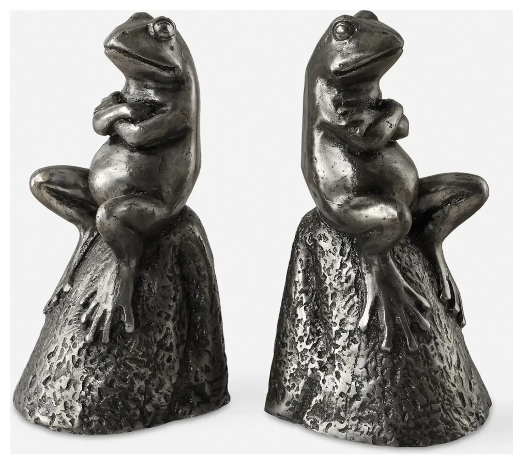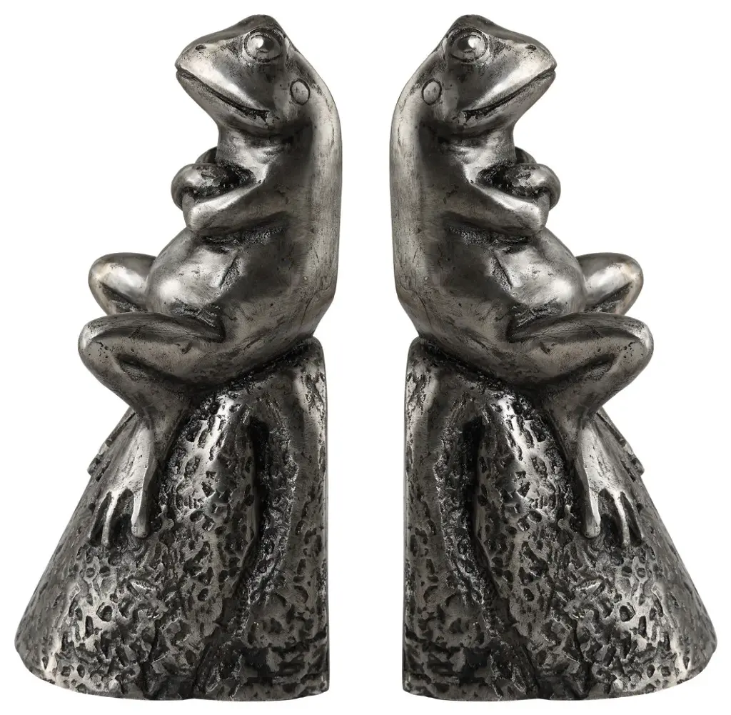 Add A Touch Of Whimsy And Elegance To Your Bookshelf With Our Daydreaming Frog Bookends. Crafted With Intricate Detail, These Charming Frogs Are Perched On Rocks, Finished In A Lightly Antiqued Silver For A Timeless Appeal. Perfect For Adding Character To Any Space While Keeping Your Books Organized In Style. Bookends, S/2 from the Daydreaming Bird collection in Lightly Antiqued Silver finishAdd A Touch Of Whimsy And Elegance To Your Bookshelf With Our Daydreaming Frog Bookends. Crafted With Intricate Detail, These Charming Frogs Are Perched On Rocks, Finished In A Lightly Antiqued Silver For A Timeless Appeal. Perfect For Adding Character To Any Space While Keeping Your Books Organized In Style.Width: 3.75"Height: 7.00"Length: 3.50"Weight: 8.84 lb