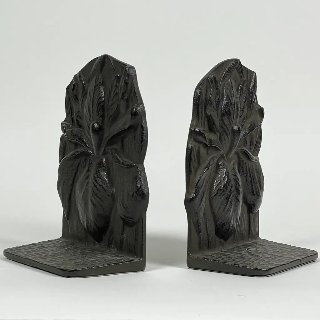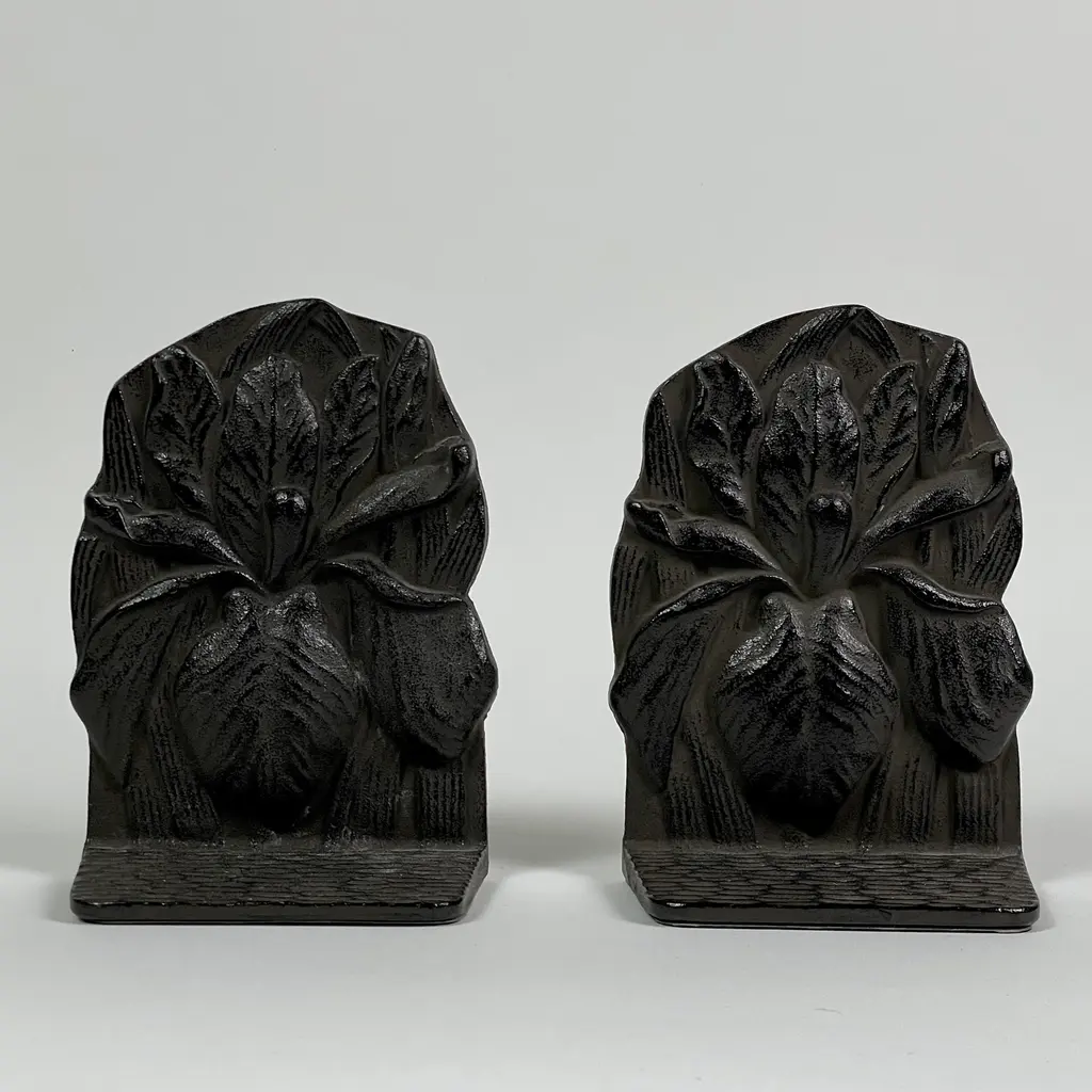 Vintage Art Nouveau Style Japanese Cast Iron Iris Flower Bookends