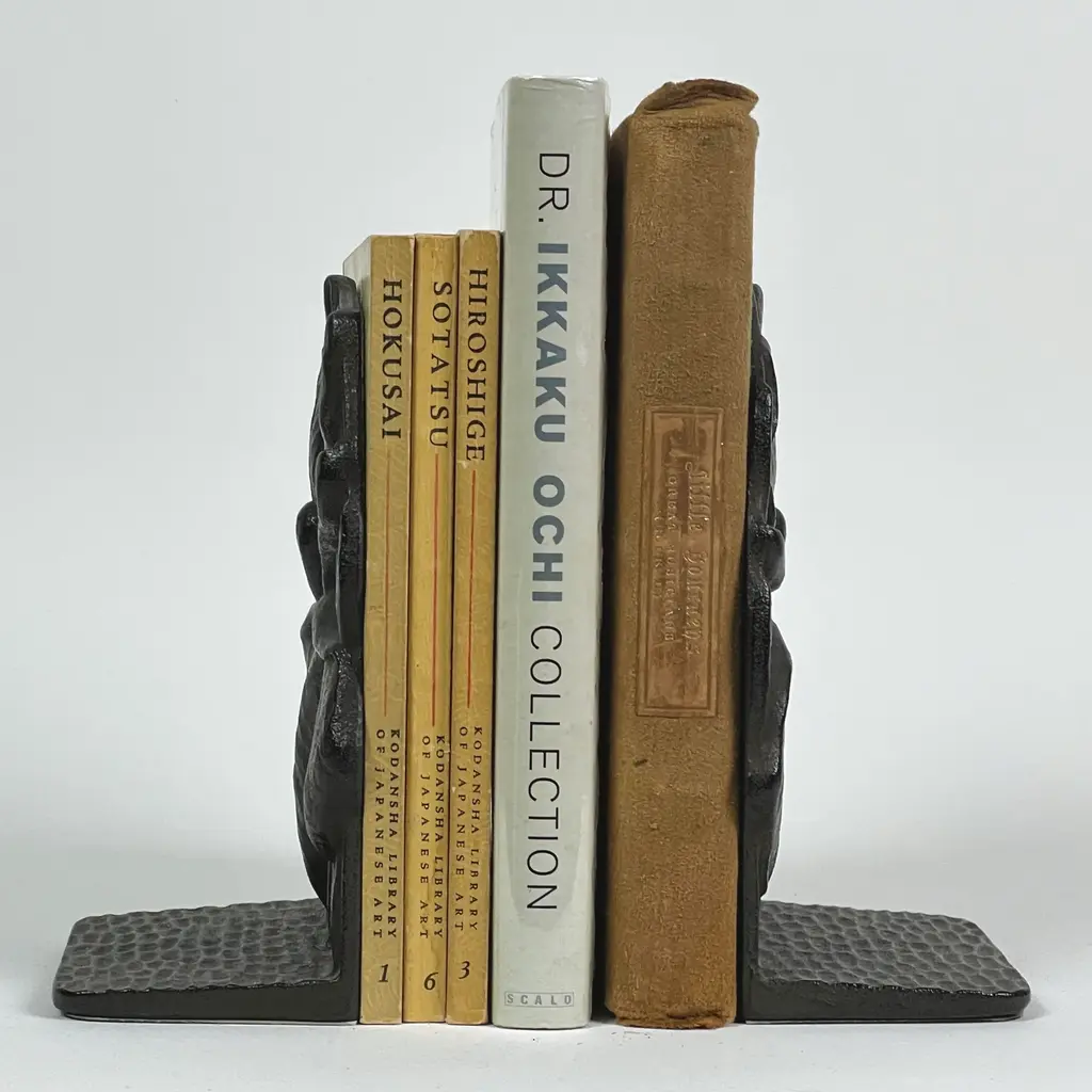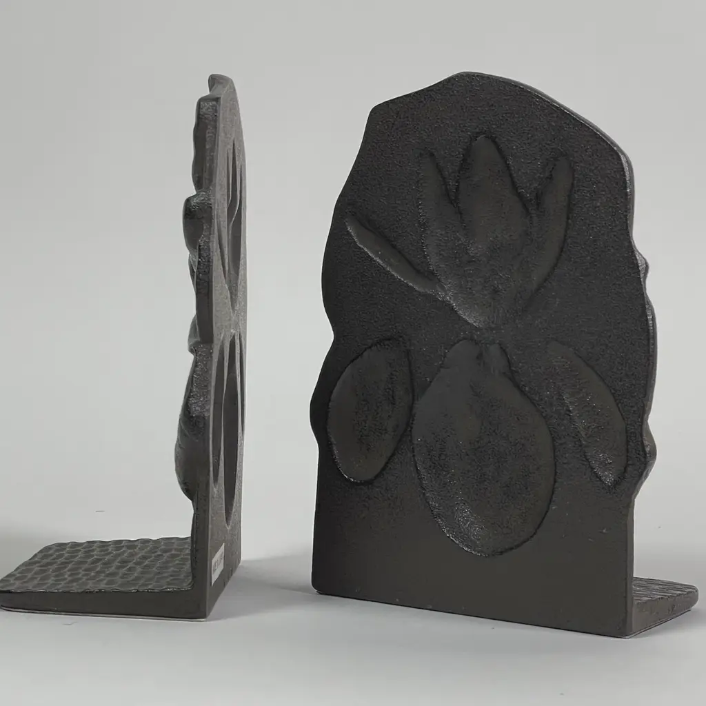Vintage Japanese Cast Iron Iris Flower Bookends (Pair). In good condition with minor wear consistent with age. Size: 6.5”H x 4.75”W x 2.75”D (each)