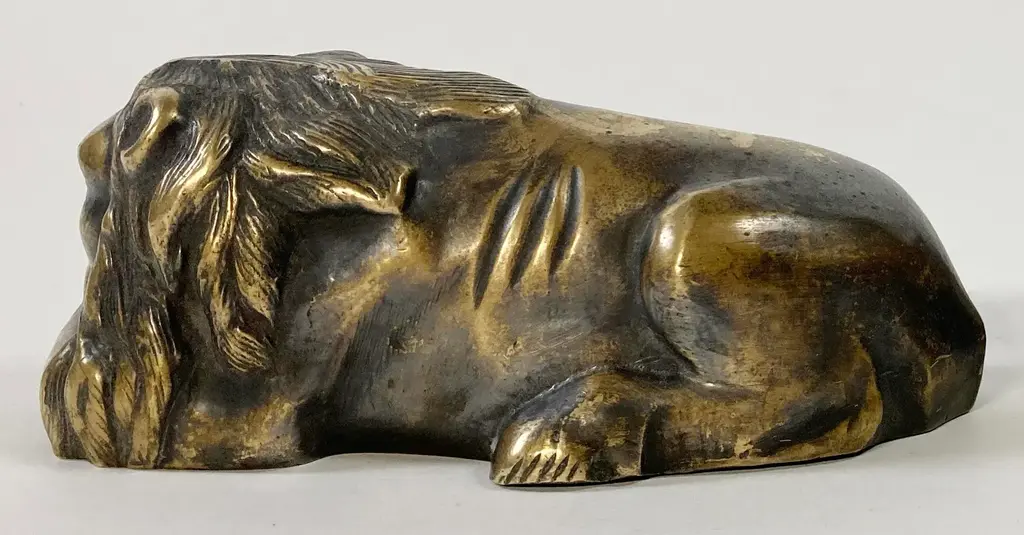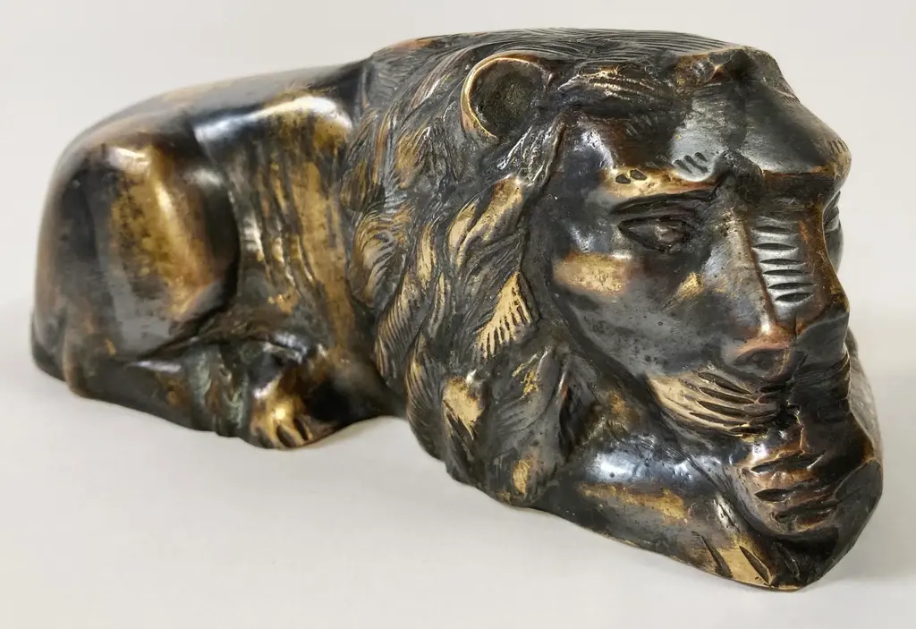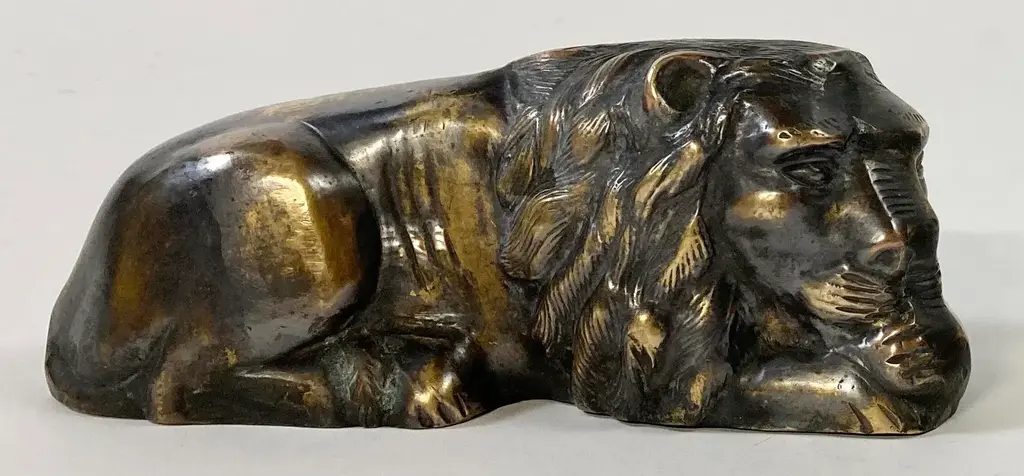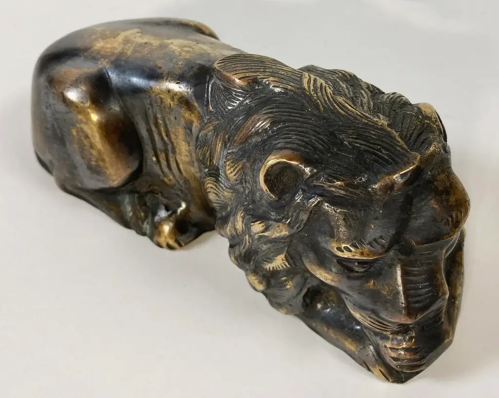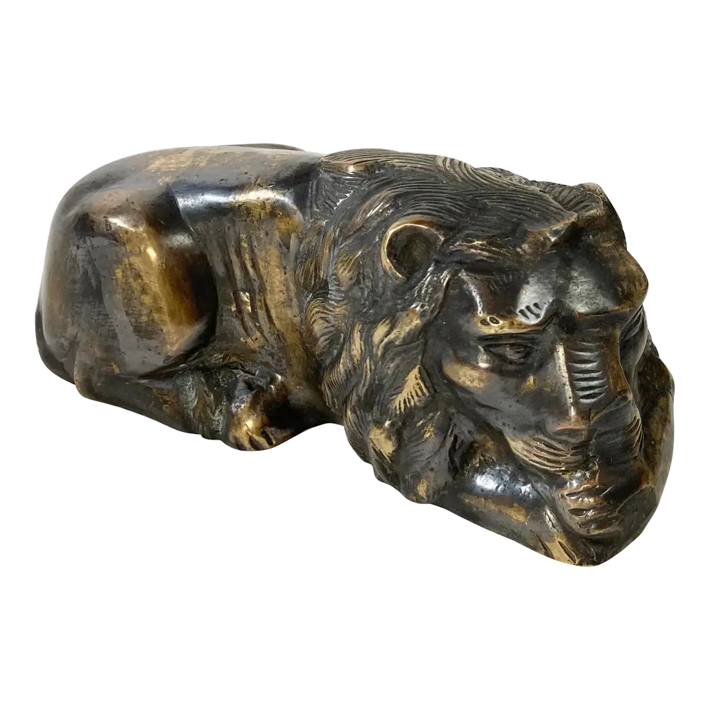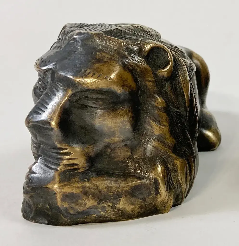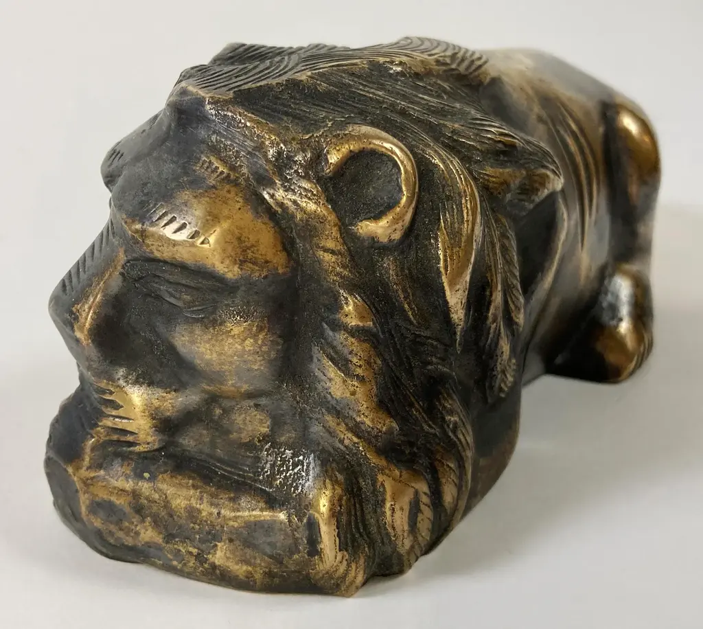 Vintage Bronze Resting Lion Paper Weight, Bookend Or Doorstop*