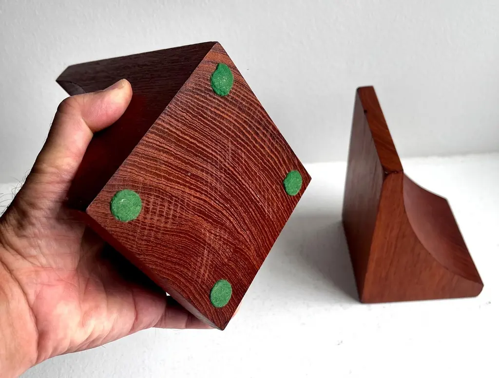 Vintage Solid Teak Bookends Brostrom, Denmark, circa 1970"each individual bookend is 4 1/4" D x 4 1/4" W x 6 3/8" T""oiled with food grade mineral oil"