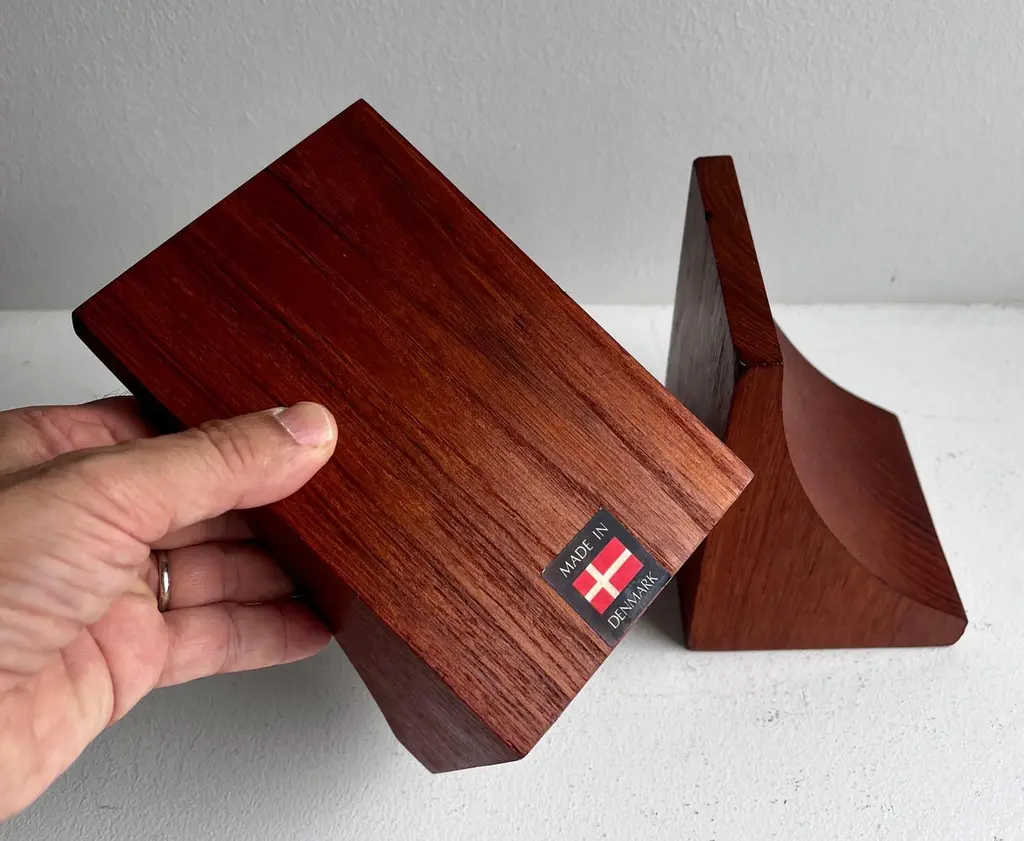 Vintage Solid Teak Bookends By Brostrom, Denmark, Circa 1970
