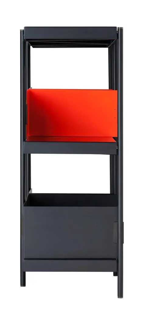 "Zigzag" is a low bookcase, designed by Konstantin Grcic and manufactured by Driade, featuring structure and shelves in steel finished with epoxy paint in white or black colors. Bookends in sheet metal steel finished with epoxy paint available in the following colors: white, black, fluorescent orange or polished stainless steel with a mirror finish. Bookends are not included and their placement is purely indicative.Indoor use only.DIMENSIONS: D. 13.3", W. 62.9", H. 34.6"The shelf's zigzag shaped structure is simple and fresh; the color palette for the metal work - black, white, bronze and polished stainless steel - is complemented by two kinds of wooden shelves, in oak or American walnut. The clip-on bookends are available in colors matching all the other metal parts or veneered in the same woods as the shelves. An additional and fluorescent orange color enriches the bookends proposal.ZigZag is available in a high or low version and can be easily assembled without any tools.KONSTANTIN GRCIC was born in Munich in 1965. He apprenticed as a cabinet maker at John Makepeace School in the UK from 1985-1987. In 1990 he earned a MA in Industrial Design at the Royal College of Art in London. He founded Konstantin Grcic Industrial Design (KGID) in 1991. The office specializes in various fields of design ranging from furniture and Industrial products to exhibition design and architecture related work. KGID is working for some leading names of the design industry. Many of their products have received international design awards and form part of the permanent collections of the world's most prestigious museums. Grcic defines function in human terms, combining formal strictness with considerable mental acuity and humour. Each of his products is characterized by a careful research into the history of design and architecture and his passion for technology and materials. Known for paired down-down pieces, Grcic is often called a Minimalist but the designer himself prefers to speak of simplicity.