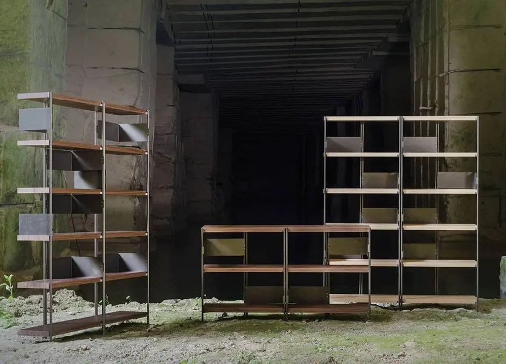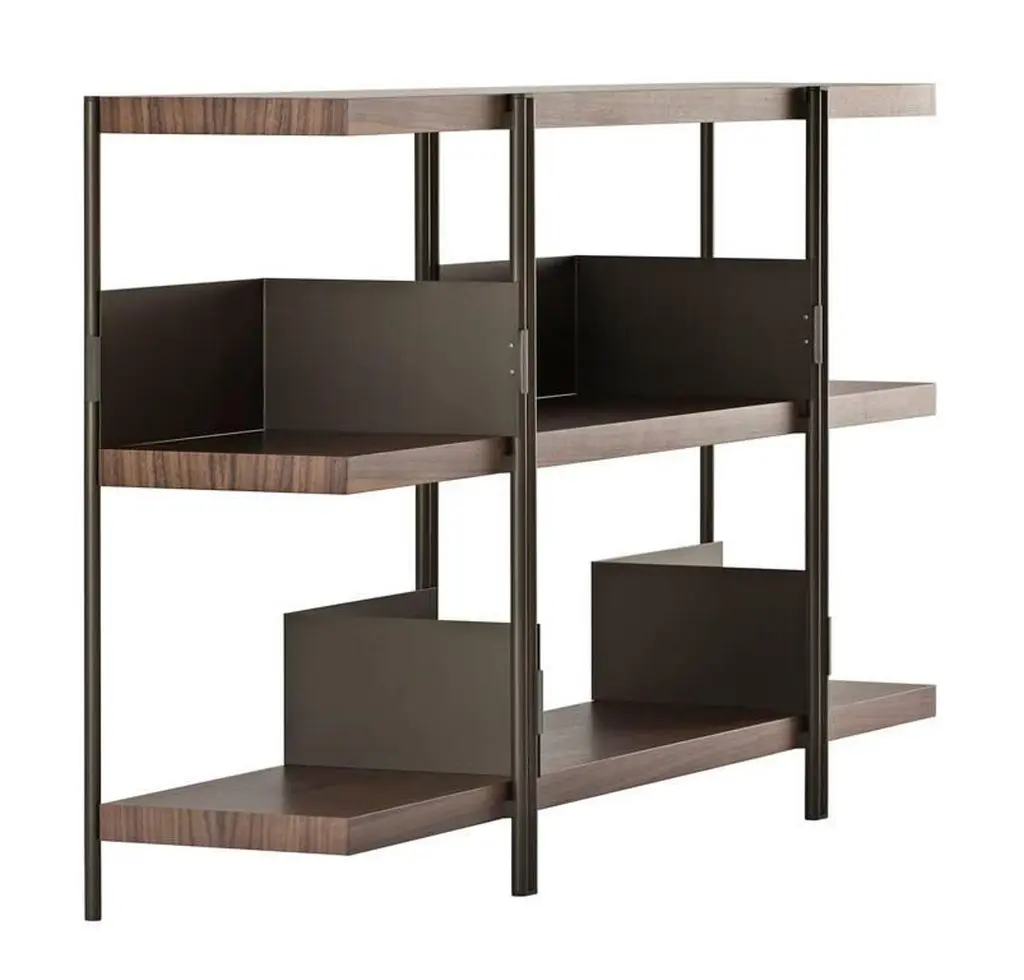 "ZigZag" is a low bookcase, designed by Konstantin Grcic and manufactured by Driade, featuring structure in bronze painted steel and Canaletto walnut veneered shelves. Bookends in sheet metal steel finished with epoxy paint available in the following colors: white, black, fluorescent orange or polished stainless steel with a mirror finish. Bookends are not included and their placement is purely indicative. Indoor use only.DIMENSIONS: D. 13.3", W. 62.9", H. 34.6"The shelf's zigzag shaped structure is simple and fresh; the color palette for the metal work - black, white, bronze and polished stainless steel - is complemented by two kinds of wooden shelves, in oak or American walnut. The clip-on bookends are available in colors matching all the other metal parts or veneered in the same woods as the shelves. An additional and fluorescent orange color enriches the bookends proposal.ZigZag is available in a high or low version and can be easily assembled without any tools.KONSTANTIN GRCIC was born in Munich in 1965. He apprenticed as a cabinet maker at John Makepeace School in the UK from 1985-1987. In 1990 he earned a MA in Industrial Design at the Royal College of Art in London. He founded Konstantin Grcic Industrial Design (KGID) in 1991. The office specializes in various fields of design ranging from furniture and Industrial products to exhibition design and architecture related work. KGID is working for some leading names of the design industry. Many of their products have received international design awards and form part of the permanent collections of the world's most prestigious museums. Grcic defines function in human terms, combining formal strictness with considerable mental acuity and humour. Each of his products is characterized by a careful research into the history of design and architecture and his passion for technology and materials. Known for paired down-down pieces, Grcic is often called a Minimalist but the designer himself prefers to speak of simplicity.