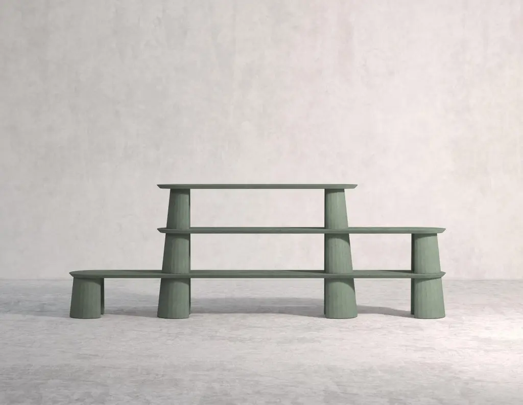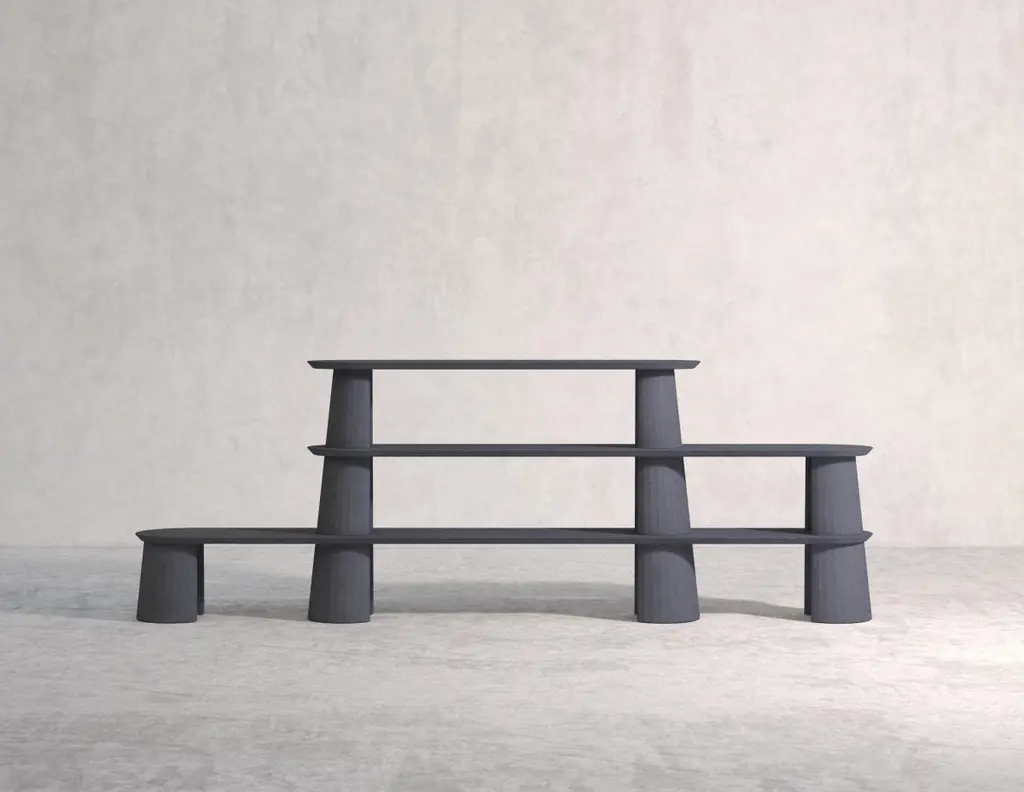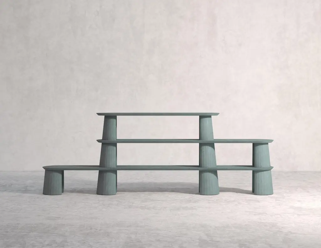Bookcase part of a collection of modular system in ultra-high performing cement mortar. UHPC tabletop and base colored in the mixture and sandblasted. Available in eight different colors: brick, silver, powder, cream, fir, dark, chocolate, ink and ultra marine. Each item is hand treated and is protected with water repellent products to reduce the absorption of oily substances and to minimize the making of stains.Surrealism, primitivism, metaphysics and brutalism. Art together with architecture and design build a scenario of inspirations and continuous references through which the material rises to an expressive language, ready to welcome and rework formal suggestions of different origins.Fusto is the series that introduces the new design approach. As in classical architecture, Fusto is the column that holds tables, consoles, bookcases and pedestals. Volumes and proportions are integrated in a timeless geometry, enriched with facets that make the color vibrate in a game of lights and shadows.Fusto is eternal architecture. Our products are easily recognizable by the exclusive treatment of the material and the passionate quest for lightness and style.The artisanal handicraft, the use of modern materials and innovative techniques, with a completely “Made in Italy” production, further enhances the prestige of Italian design.Forma&Cemento, the Italian brand of excellence in artisanal cement processing, stands out for its commitment to environmental sustainability, embracing a philosophy that is reflected in every phase of the production process. The company's mission is to offer unique and customizable products made with high-quality materials and a keen eye for the environment.At the core of Forma&Cemento's production is UHPC cement, a high-performance cementitious mortar that ensures not only durability and strength but also a reduced environmental impact compared to traditional cement production processes. The artisanal craftsmanship and expertise of the design and artisan team allow for the creation of lightweight and sturdy products, transforming cement into an ideal material for furnishing both indoor and outdoor spaces.One of the main criticisms raised about the cement industry is the environmental impact associated with CO2 production. Forma&Cemento addresses this concern by inviting reflection on the durability of its products. Similar to a glass, whose longevity compensates for the impact of the production phase over its expected lifespan, Forma&Cemento products are designed to last a lifetime. The durability of these products sets them apart from less sustainable materials, such as plastic or paper.Sustainability goes beyond product durability: Forma&Cemento has implemented a closed production cycle, where waste from one production becomes the raw material for another product. A notable example of this innovative use of waste is the creation of products with a "terrazzo" effect. All materials used are selected based on sustainability certifications and sourced locally, reducing the CO2 impact associated with transportation. The choice to use sand from the Tiber River, among the same materials used by ancient Romans, pays homage to tradition and serves as an example of how the modern can draw from a rich historical legacy.Through a "made-to-order" production approach, Forma&Cemento avoids excessive warehouse costs and further reduces CO2 emissions related to transportation. The meticulous selection of environmentally friendly materials and ongoing research to create new cement mixtures by integrating waste materials attest to the company's consistent commitment to increasingly sustainable and environmentally respectful production.Copyright © 2024 Forma&Cemento
