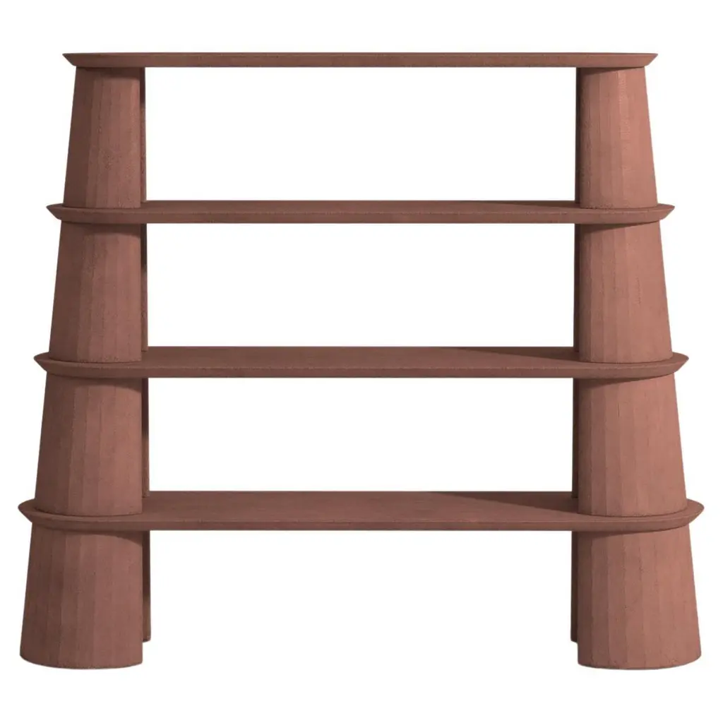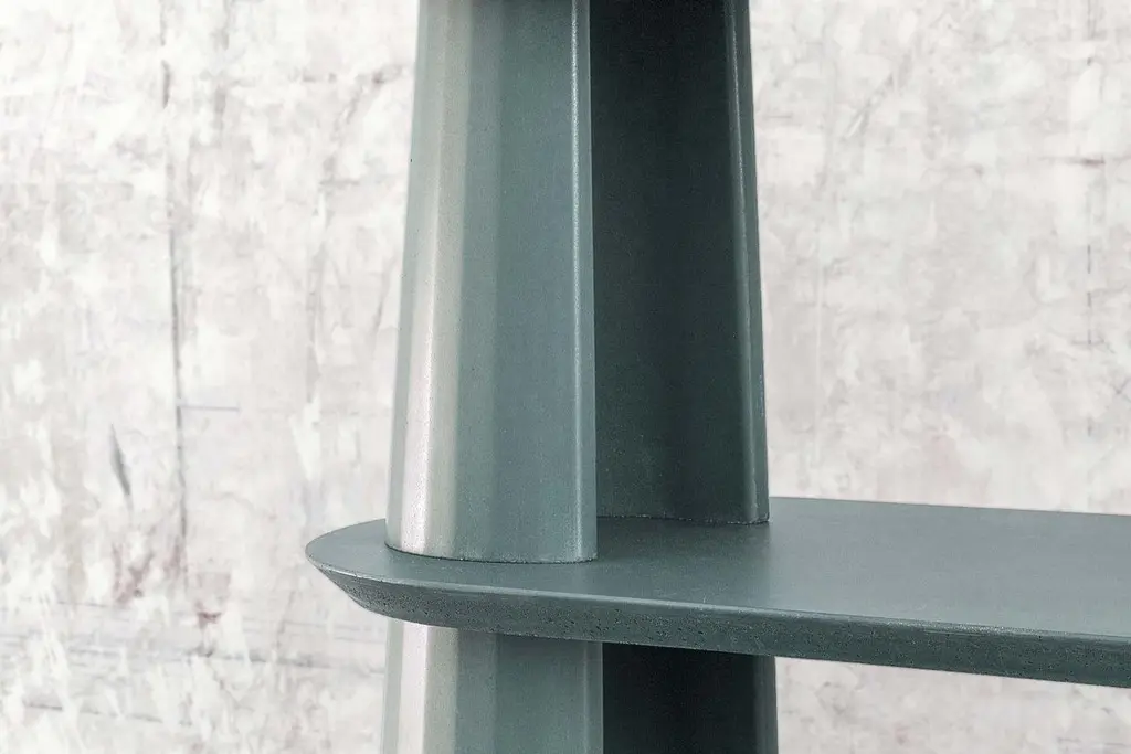 Bookcase part of a collection of modular system in ultra-high performing cement mortar. UHPC tabletop and base colored in the mixture and sandblasted. Available in eight different colors: Brick, silver, powder, cream, fir, dark, chocolate, ink and ultra marine. Each item is hand treated and is protected with water repellent products to reduce the absorption of oily substances and to minimize the making of stains.Surrealism, primitivism, metaphysics and brutalism. Art together with architecture and design build a scenario of inspirations and continuous references through which the material rises to an expressive language, ready to welcome and rework formal suggestions of different origins.Fusto is the series that introduces the new design approach. As in classical architecture, Fusto is the column that holds tables, consoles, bookcases and pedestals. Volumes and proportions are integrated in a timeless geometry, enriched with facets that make the color vibrate in a game of lights and shadows.Fusto is eternal architecture.Our products are easily recognizable by the exclusive treatment of the material and the passionate quest for lightness and style.The artisanal handicraft, the use of modern materials and innovative techniques, with a completely “Made in Italy” production, further enhances the prestige of Italian design.