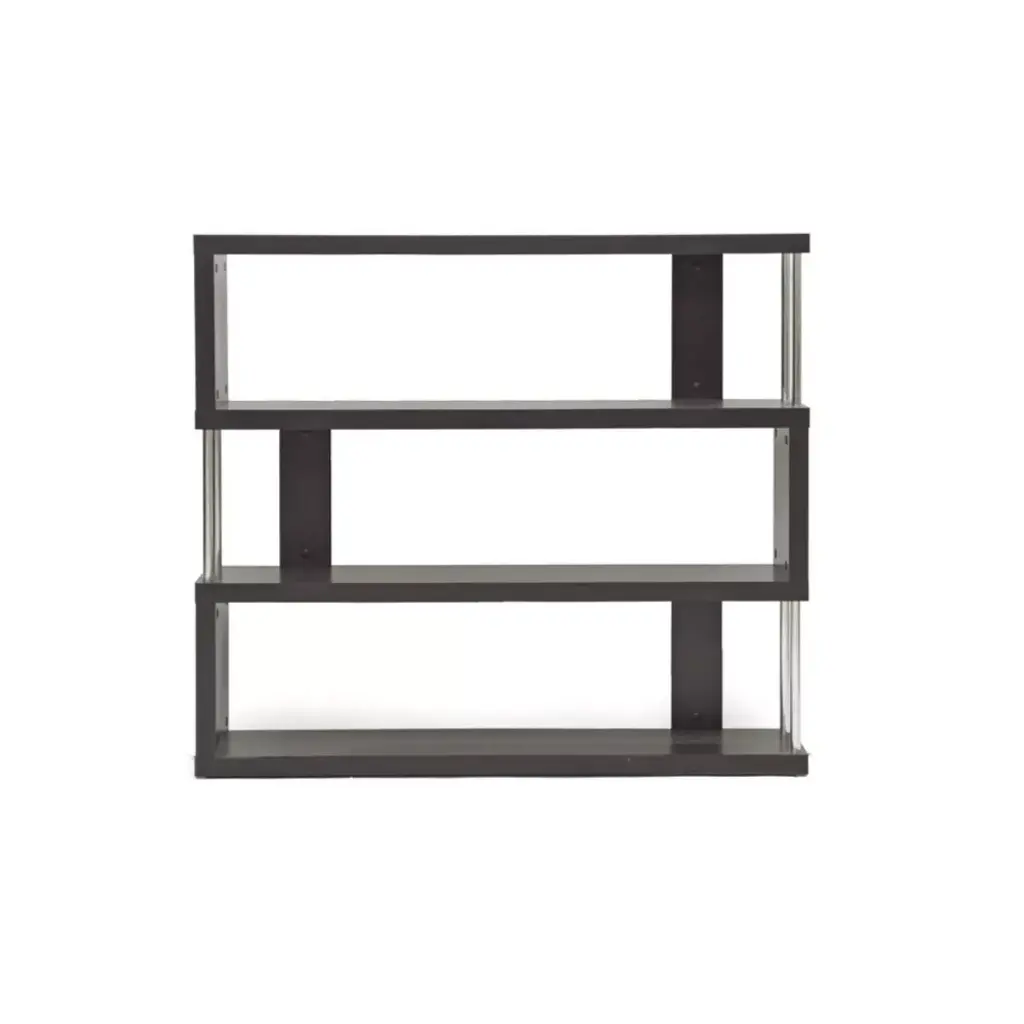 38.5" Barnes Three Shelf Modern Bookshelf Dark Brown - Baxton Studio: Chromed Steel Supports, Engineered Wood