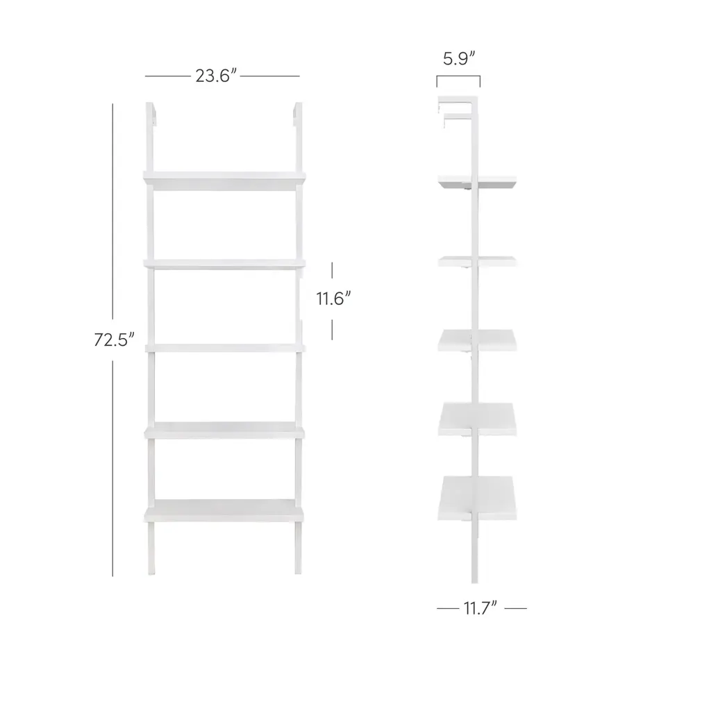 5-Shelf Coastal Ladder Bookshelf White (Set Of 2)