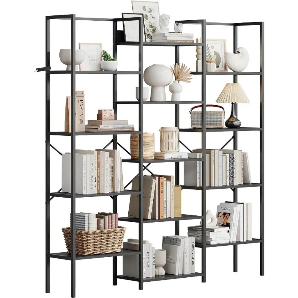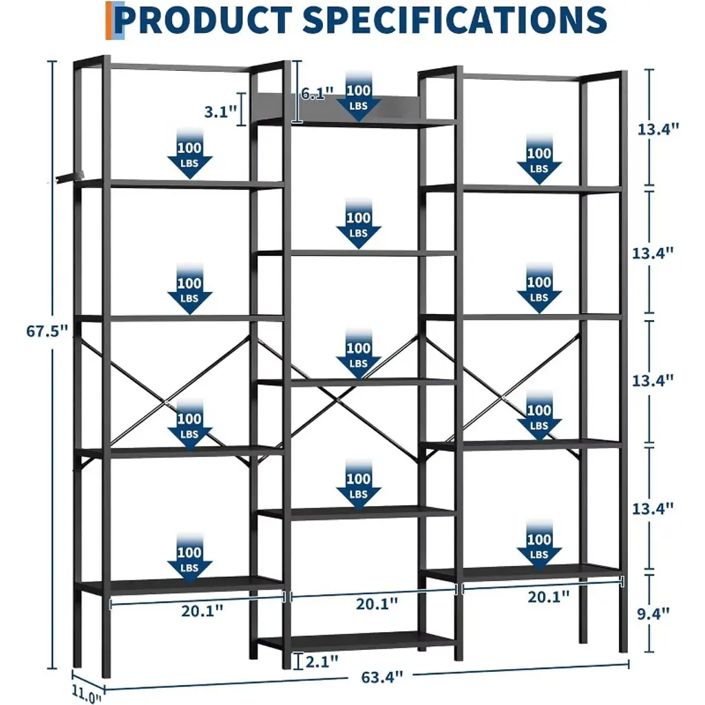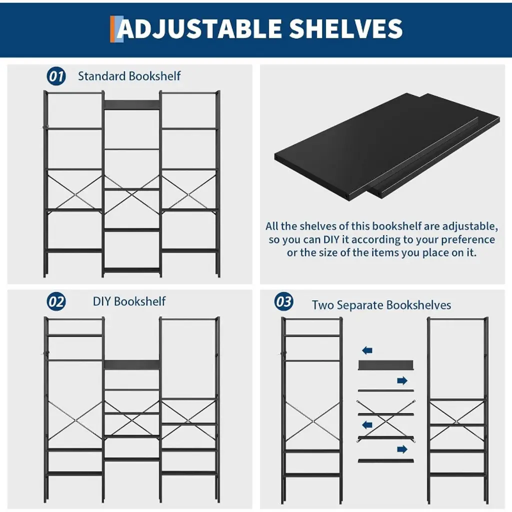 5 Tier Bookshelf, Bookcase With 14 Open Display Shelves,modern Large Adjustable Rustic Industrial Style Book Shelves For Home & Office