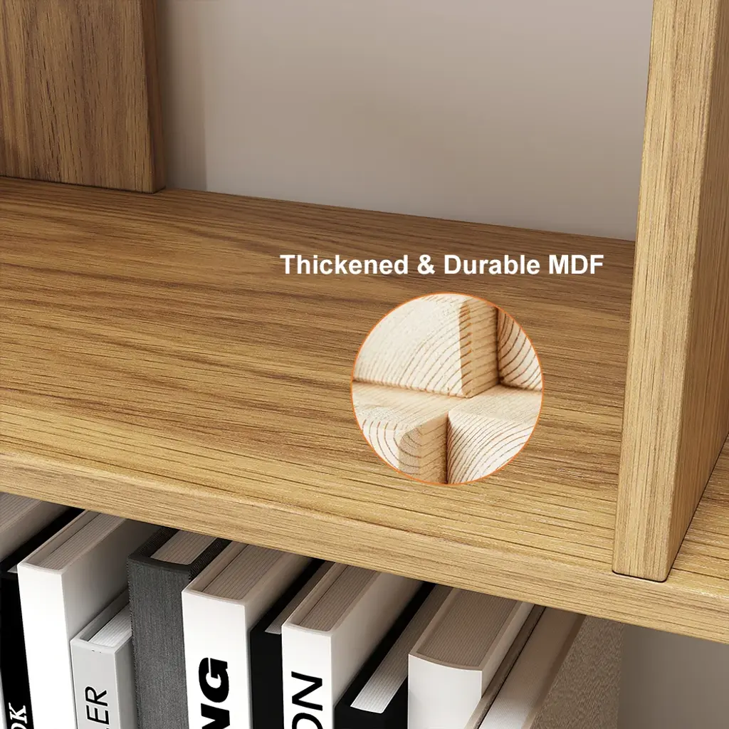 5-Tier Natural Wood Bookshelf With 2 Doors Modern Bookcase In Gold Finish