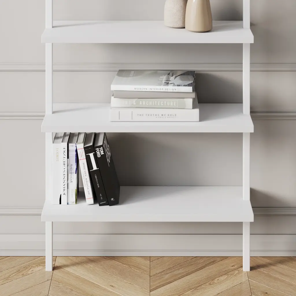 Clean, simple, and endlessly versatile--the Theo Bookshelf in Matte White brings effortless style to any room. With fixed shelves and a wall-mounted design, it's both space-saving and statement-making. Each shelf supports up to 55 lbs, offering plenty of room for books, décor, or everyday storage. The matte white powder-coated frame and coordinating shelves create a fresh, monochromatic look that works in any space--from modern office to minimalist living room. Style one or line up multiples for impact.