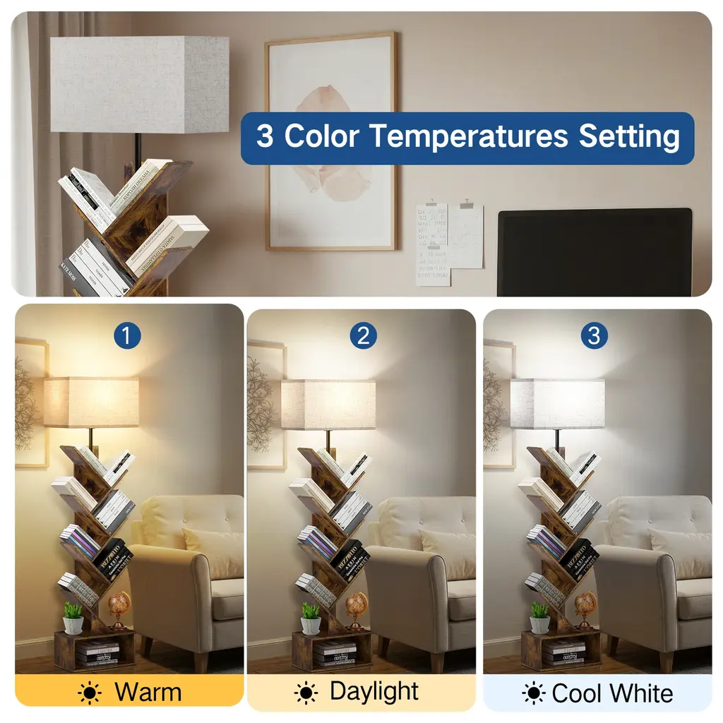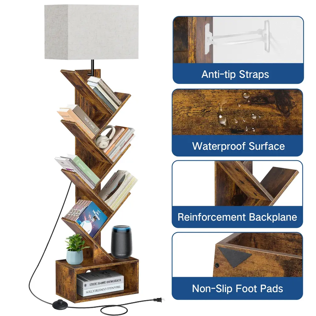 6 Tier Tree Bookshelf With Light And Remote Control - Buckwheat Lampshade Vintage Yellow - 56.7"h * 14.6"w * 7.9"d