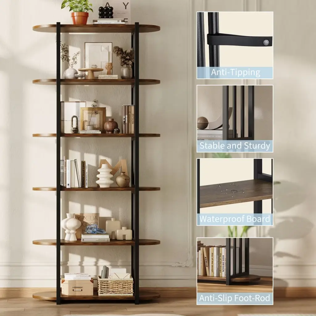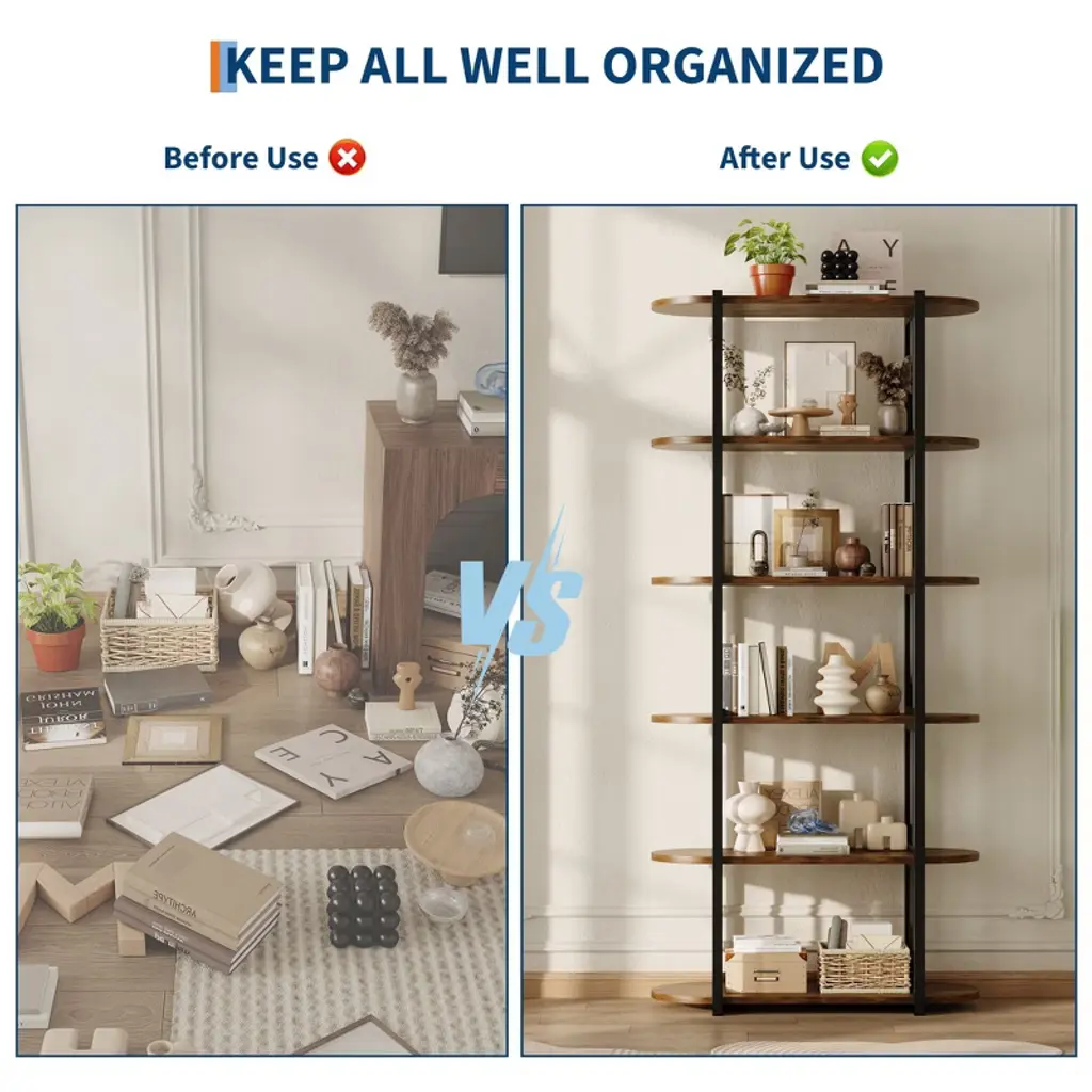 Introducing the 6 Tier Wooden Bookshelf, a perfect blend of industrial style and practical storage designed to elevate your living room or home office. Standing tall at 71 inches, this freestanding bookshelf offers ample space to organize your books, decor, and essentials in a sleek, modern design that complements any interior.
