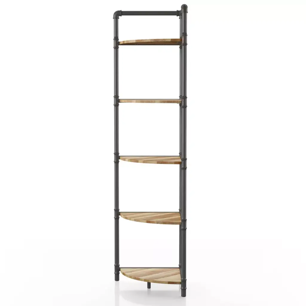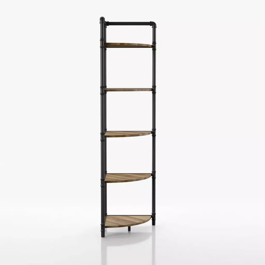 24/7 Shop At Home 63.75" Beeme 5 Tier Corner Bookshelf Sand Black/light Pure Copper: Industrial Style Mdf Storage