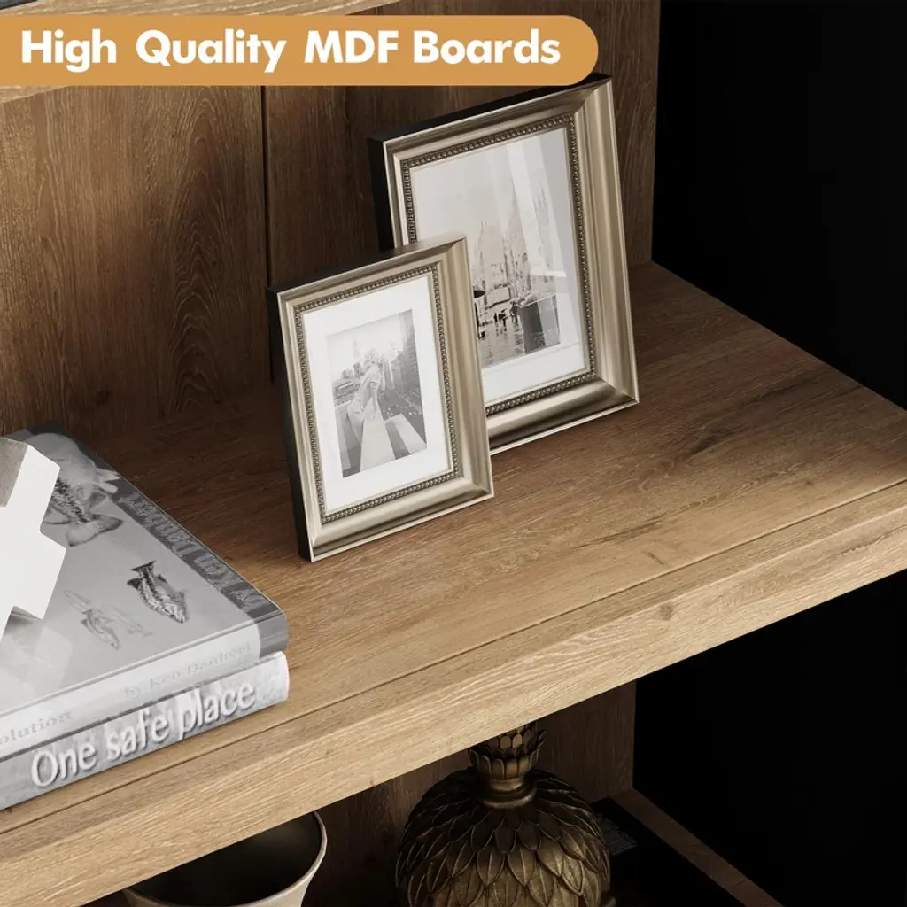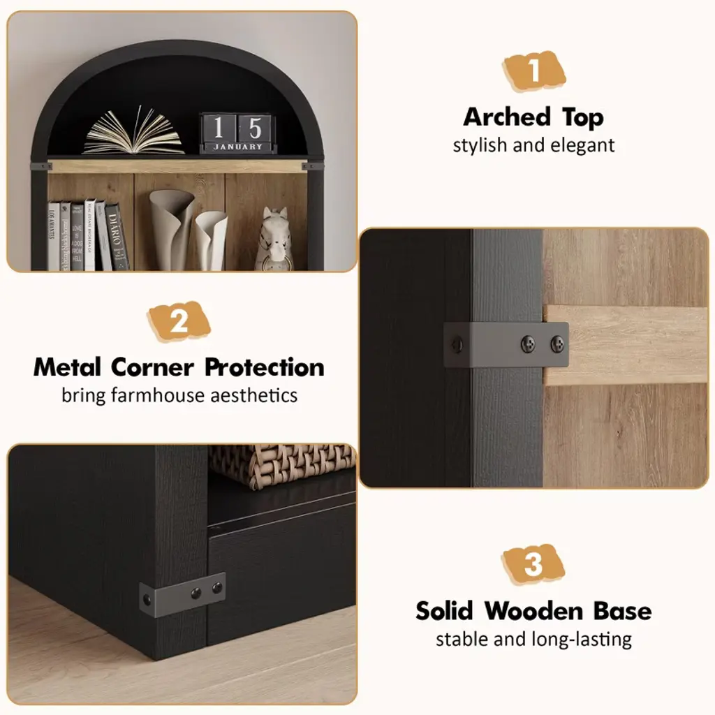 71" Tall Arched Bookshelf,bookcase With Storage,mid-century Modern 5-tier Bookshelf With Door, For Living Room,kitchen,home Office