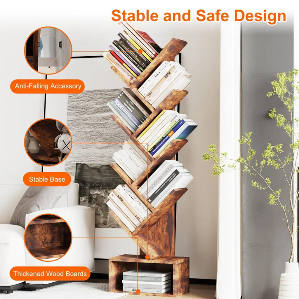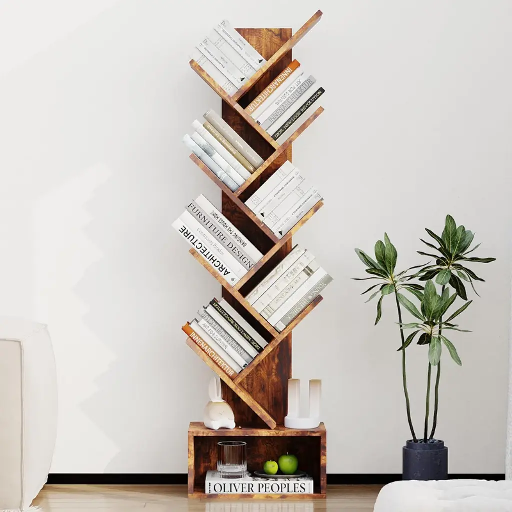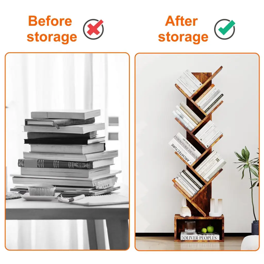 This industrial-style 8-tier bookshelf combines vintage charm with practical open storage, featuring a sturdy metal frame and distressed wood shelves. The retro design adds character to any space while providing ample room for books, decor, and collectibles. Perfect for displaying your favorite reads or showcasing decorative items, this versatile rack transitions effortlessly between living rooms, bedrooms, and home offices. The rich brown finish and exposed hardware create authentic industrial character that complements farmhouse, rustic, or urban loft decor styles.