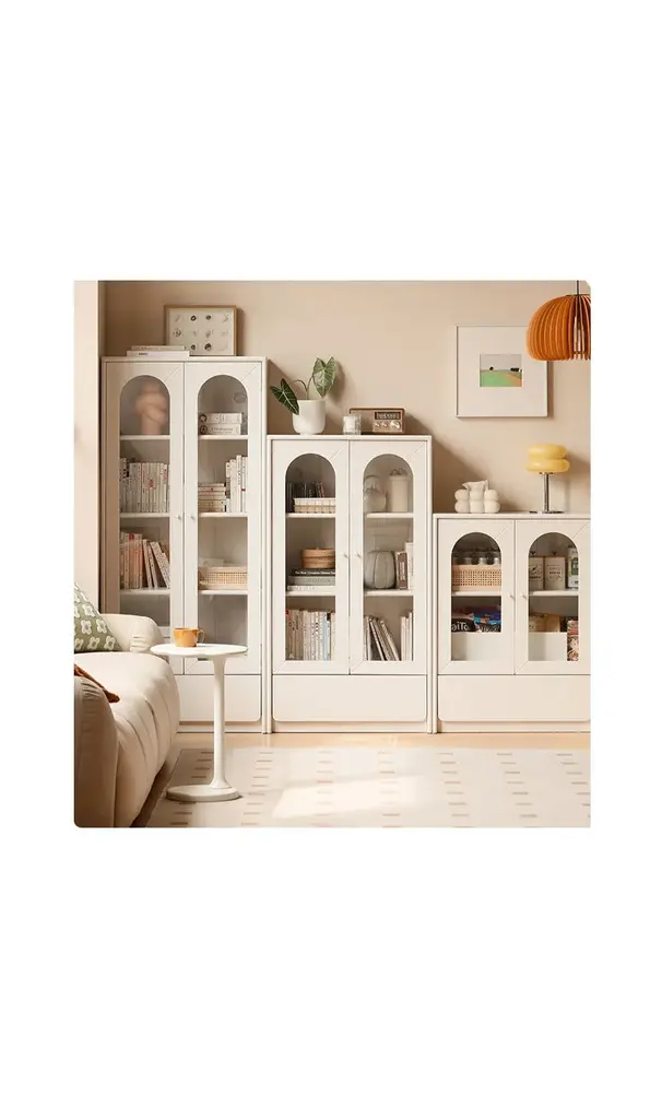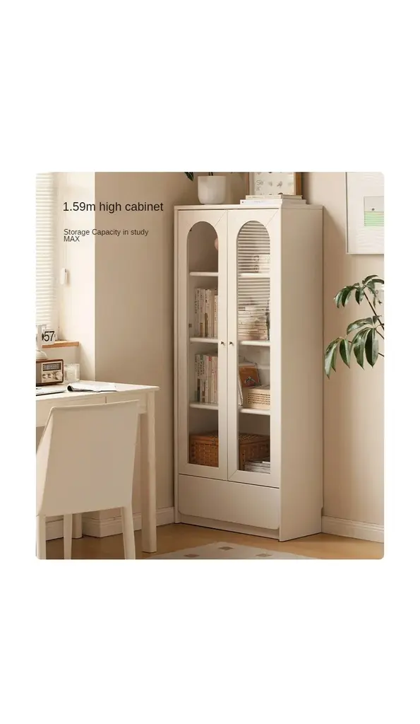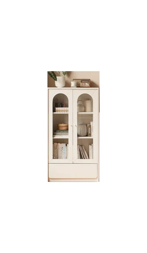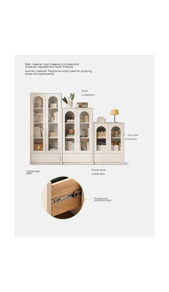 Exaggerated cream style combination bookcase A soft creamy white Self-healing Half arched glass door Simple but versatile Three height free collocation Every space in the home can be easily controlledThe main material is North American ASH class (FSCgrade)(top quality) FSC certified, with a beautiful patternAn additional material is paulownia wood, which is used only for the inner panel of the drawer. (for some products)Corrosion resistance, wear resistance, high temperature resistance, no deformationOur furniture is 100%FSC-certified wood from forests that are responsibly managed to be environmentally sound and socially beneficialBy choosing FSC-certified furniture, you are supporting responsible management of the world's forests.The whole product is made up of 100% pure solid wood, -without any artificial boards, -without veneer, -without spliced boards, all natural.North American Ash, grade FAS, with a rough texture, toughness and elasticity, with high corrosion resistance.Strong stability.FAS grade is a high-quality grade specified by the American Timber Association,Which is two pieces of wood near the bottom.The quality is particularly outstanding.Clearly visible pith rays make the wood dense and beautiful in textureamong the North American origins, the Pennsylvania region on the northern slope of the Appalachian Mountains is better.The ash is finished with our nourishing natural vegetable wood wax oilBotanical formula, from soybean oil,Which protects the timbers and reveals it's natural texture