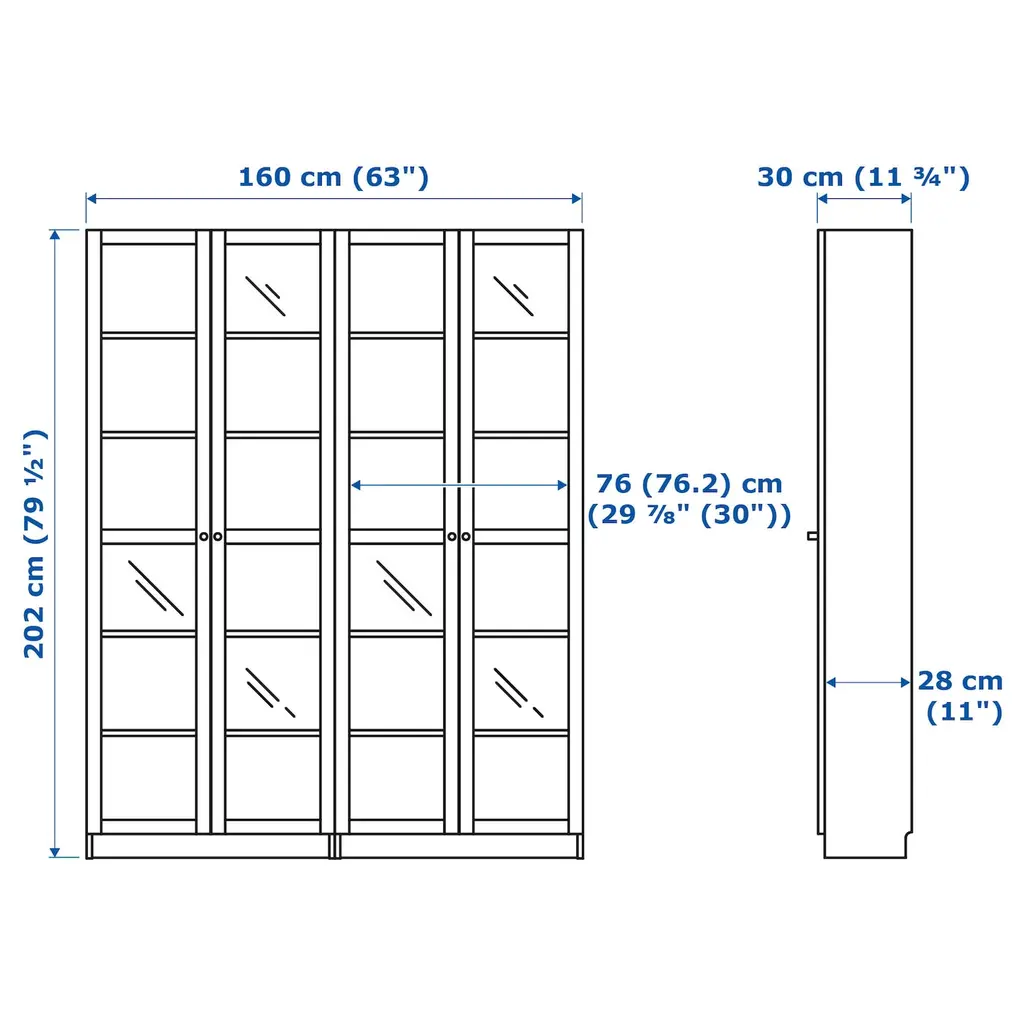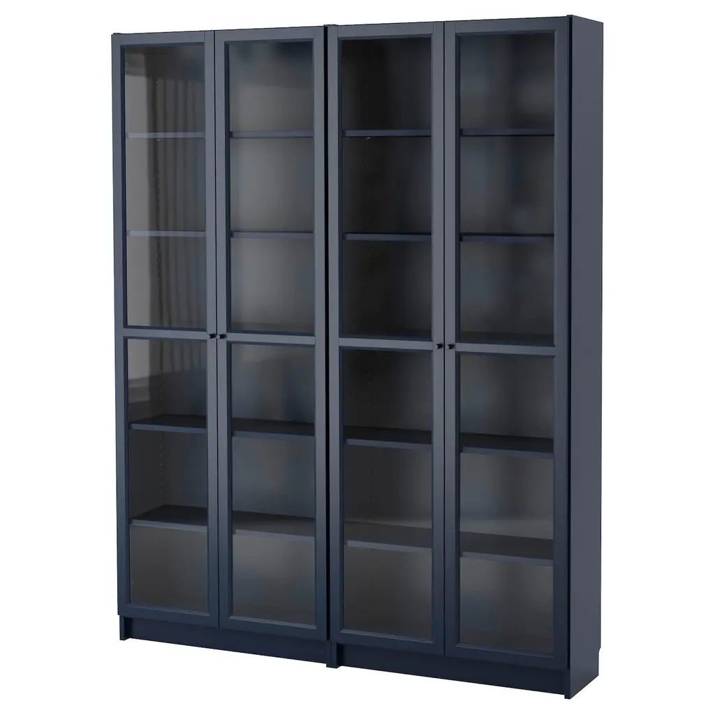 BILLY Bookcase - dark blue 63x11 3/4x79 1/2 ". Adjustable shelves can be arranged according to your needs. Adjustable hinges allow you to adjust the door horizontally and vertically. Glass-door cabinet keeps your favorite items free from dust but still visible.